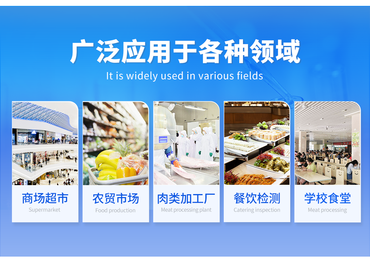 該肉類綜合檢測儀為集成化肉品安全快速檢測分析設備,廣泛應用于養(yǎng)殖場、屠宰場、食品肉產品深加工企業(yè)、檢驗檢疫部門、食藥監(jiān)局、衛(wèi)生部門、高教院校、科研院所、農業(yè)部門等單位使用。
