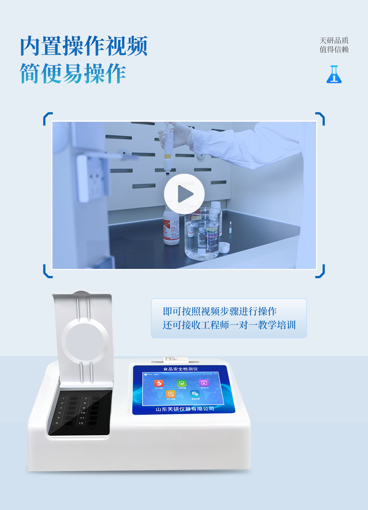 產(chǎn)品介紹: 多功能食品安全檢測(cè)儀可快速檢測(cè)200多項(xiàng)目,包含非食用化學(xué)物質(zhì)、濫用食品添加劑、農(nóng)藥殘留、獸藥殘留、重金屬、病害肉、營(yíng)養(yǎng)強(qiáng)化劑、抗生素類殘留、激素類殘留、真菌毒素類殘留、化學(xué)類殘留等現(xiàn)場(chǎng)的定性定量檢測(cè)。該多功能食品安全檢測(cè)儀為集成化食品安全快速檢測(cè)分析設(shè)備,廣泛應(yīng)用于市場(chǎng)