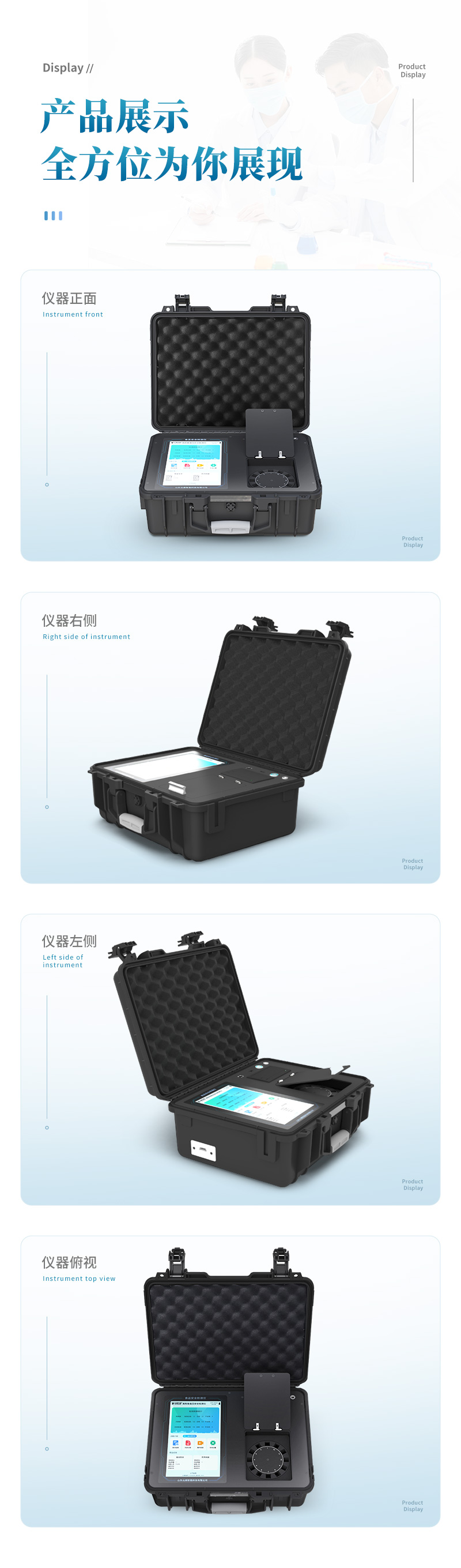 | 儀器采用手提式一體化系統(tǒng)檢測技術(shù),將分光光度模塊、膠體金檢測模塊、新型農(nóng)殘檢測模塊、數(shù)字化管理模塊、無線通訊模塊高度集成于一體,支持檢測200種食品安全檢測項(xiàng)目,同時(shí)預(yù)留升級(jí)檢測方法。 | 儀器檢測模塊標(biāo)準(zhǔn)化、智能化,檢測項(xiàng)目可隨意自由組合。檢測箱體內(nèi)置多個(gè)標(biāo)準(zhǔn)檢測單元,檢測模塊可以調(diào)整配置。 | 顯示屏幕:儀器采用10.1英寸豎向液晶觸摸屏顯,搭配運(yùn)行安卓智能操作系統(tǒng),主控芯片采用ARM Cortex-A7,RK3288/4核處理器,主頻1.88Ghz,操作方便,性能更強(qiáng)。 | 檢測通道:≥12通道;采用精密旋轉(zhuǎn)比色池設(shè)計(jì),使用同芯片同光源校準(zhǔn)精度,解決不同光源之間的誤差值,更加準(zhǔn)確**。(1-12通道間誤差0.1%,專利號(hào):ZL202022821055.2) | 儀器光源:高精度進(jìn)口四波長冷光源,每個(gè)通道均配置 410、520、590、630nm 波長光源,標(biāo)配**的光路切換裝置,專利光路切換功能可實(shí)現(xiàn)64波長,并且所有檢測項(xiàng)目可實(shí)現(xiàn)所有通道同時(shí)檢測。 | 設(shè)備可一鍵校準(zhǔn),自動(dòng)保存校準(zhǔn)數(shù)據(jù),自動(dòng)對(duì)比校驗(yàn),得到精準(zhǔn)光源,采用Android SP存儲(chǔ)數(shù)據(jù),光源數(shù)據(jù)永不丟失,方便每一次使用。 | 通訊接口:配備無線通信模塊、4G(APN)通訊模塊、藍(lán)牙傳輸,同時(shí)具有雙USB接口以及RJ45網(wǎng)線接口,可以多方式實(shí)現(xiàn)數(shù)據(jù)保存及數(shù)據(jù)傳輸 | 存儲(chǔ)方式:支持U盤存儲(chǔ),標(biāo)準(zhǔn)USB接口,免驅(qū)動(dòng)安裝。檢測結(jié)果存儲(chǔ)容量20萬條以上,可生成Excel表格進(jìn)行拷貝,并具有登錄保護(hù)功能。 | 智能化操作系統(tǒng): | 1)操作系統(tǒng):儀器可在同一檢測界面自動(dòng)對(duì)應(yīng)相關(guān)檢測通道,一次性選擇1-12個(gè)樣品名稱,無需退出界面,節(jié)省操作時(shí)間。并可以對(duì)每個(gè)通道屬性和樣品信息單獨(dú)進(jìn)行編輯,例如送檢單位、人員,檢測人員等,打印時(shí)勾選打印顯示。 | 2)數(shù)據(jù)集成系統(tǒng):設(shè)備首頁自動(dòng)匯總分析檢測數(shù)據(jù),包含:周檢測數(shù)據(jù)、月檢測數(shù)據(jù),全部檢測總數(shù)量,均包含檢測總數(shù),合格數(shù),不合格數(shù),以及相關(guān)柱形分析圖,各項(xiàng)檢測數(shù)據(jù)一目了然,無需電腦查詢,更加快捷直觀。 | 3)數(shù)據(jù)庫系統(tǒng):十幾項(xiàng)數(shù)據(jù)庫分類管理儀器:包含項(xiàng)目類型、項(xiàng)目數(shù)據(jù)、檢測數(shù)據(jù)、歷史記錄、國標(biāo)信息、曲線信息、采樣信息、檢測信息、受檢信息、復(fù)核信息、圖表信息、光源校準(zhǔn)信息、打印樣式信息、樣品庫信息等等,數(shù)據(jù)庫之間互相協(xié)調(diào)聯(lián)動(dòng)保證數(shù)據(jù)的真實(shí)完整性。同時(shí)產(chǎn)品數(shù)據(jù)庫以及歷史檢測記錄支持一鍵檢索功能。 | 4)限量規(guī)判系統(tǒng):具有限量查詢、添加物質(zhì)合規(guī)判定系統(tǒng)。檢測出結(jié)果后,系統(tǒng)自動(dòng)調(diào)用系統(tǒng)數(shù)據(jù)庫中相關(guān)國標(biāo)進(jìn)行比對(duì)判定,客觀顯示判定結(jié)果是否合格。 | 5)項(xiàng)目預(yù)設(shè)系統(tǒng):儀器具有任務(wù)預(yù)設(shè)模塊,一鍵提前預(yù)設(shè),給出方便快捷的新檢測方案,每一個(gè)任務(wù)分別可以設(shè)置不同的樣品、批次、編號(hào)、來源、備注、抽樣信息、檢測信息、受檢信息、復(fù)核信息等更多信息。樣品送檢時(shí)一鍵調(diào)取保存信息,并可多次調(diào)取,大大提高檢測效率。 | 6)數(shù)據(jù)監(jiān)管系統(tǒng):同步對(duì)接監(jiān)管平臺(tái),數(shù)據(jù)可局域網(wǎng)和互聯(lián)網(wǎng)數(shù)據(jù)上傳,檢測結(jié)果可選擇直接傳至食品安全監(jiān)管平臺(tái)。進(jìn)行區(qū)域食品安全監(jiān)管及大數(shù)據(jù)分析處理與數(shù)據(jù)統(tǒng)計(jì),檢測區(qū)域食品安全長短期動(dòng)態(tài),達(dá)到食品安全問題預(yù)估、預(yù)警。 | 7)打印系統(tǒng):內(nèi)置全新打印機(jī),新創(chuàng)自定義打印方式,可按需靈活勾選控制:產(chǎn)品合格證(國家農(nóng)業(yè)部標(biāo)準(zhǔn)要求),二維碼,抽樣信息、檢測信息,受檢信息、復(fù)核信息、抽樣日期、檢測日期等信息的打印。 | 供電模式:儀器交直流兩用,直流12V供電,可連接車載電源,可配6ah大容量充電鋰電池,電量可實(shí)時(shí)顯示,方便戶外流動(dòng)測試。 | 膠體金檢測模塊:采用雙通道CMOS成像處理技術(shù)及膠體金免疫層析技術(shù),可同時(shí)讀取雙膠體金卡數(shù)據(jù),自動(dòng)采集、處理分析,將檢測結(jié)果顯示,并可根據(jù)參考限值自動(dòng)判斷檢測結(jié)果,可檢測常見的獸藥殘留、生物毒素、抗生素、違禁添加物等。 | 1)探測技術(shù):CMOS成像探測; | 2)檢測通道:1個(gè)通道; | 3)檢測方式:消線法和比色法; | 4)顯示模式:陰性或陽性; | 5)曲線形式:軌道式掃描方式,顯示金標(biāo)卡圖像,實(shí)時(shí)生成、識(shí)別CT曲線圖,無需手動(dòng)調(diào)整,完成檢測后自動(dòng)退出檢測卡。兼容市場上其他金標(biāo)卡,使用耗材不受限制。 | 儀器加入遠(yuǎn)程升級(jí)功能,可定向