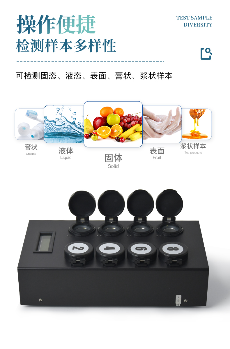 4、 檢測(cè)樣本只需1ml/1g;同一溫度下可同時(shí)檢測(cè)8個(gè)樣品;
