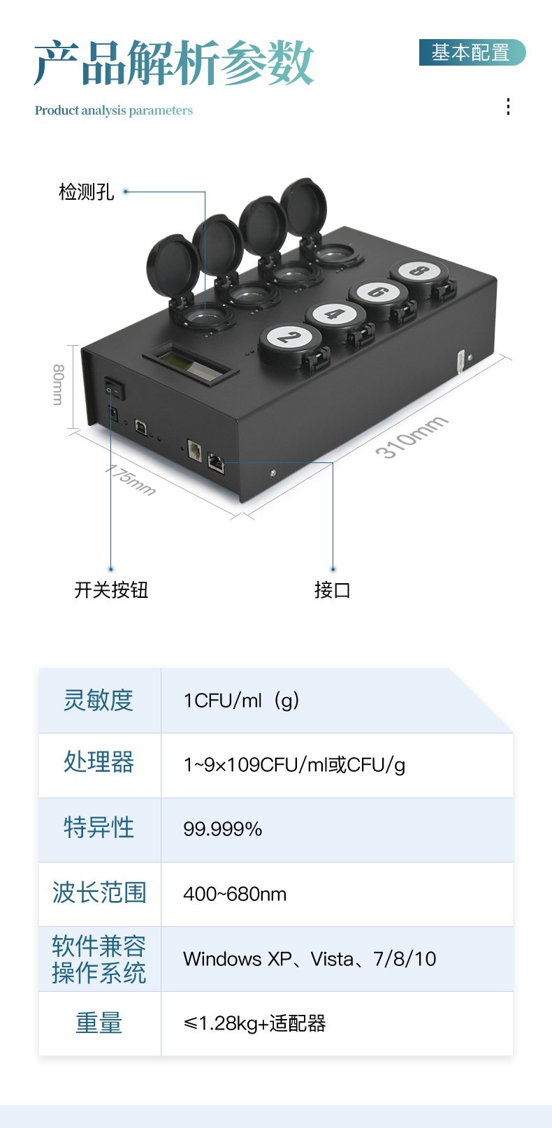 6、 獨(dú)立、持續(xù)的檢測(cè)并記錄瓶中的微生物數(shù)量(CFU)