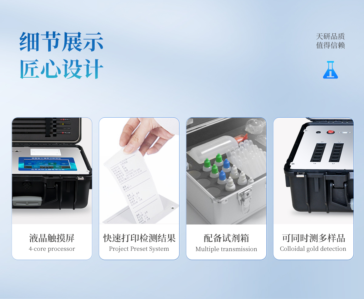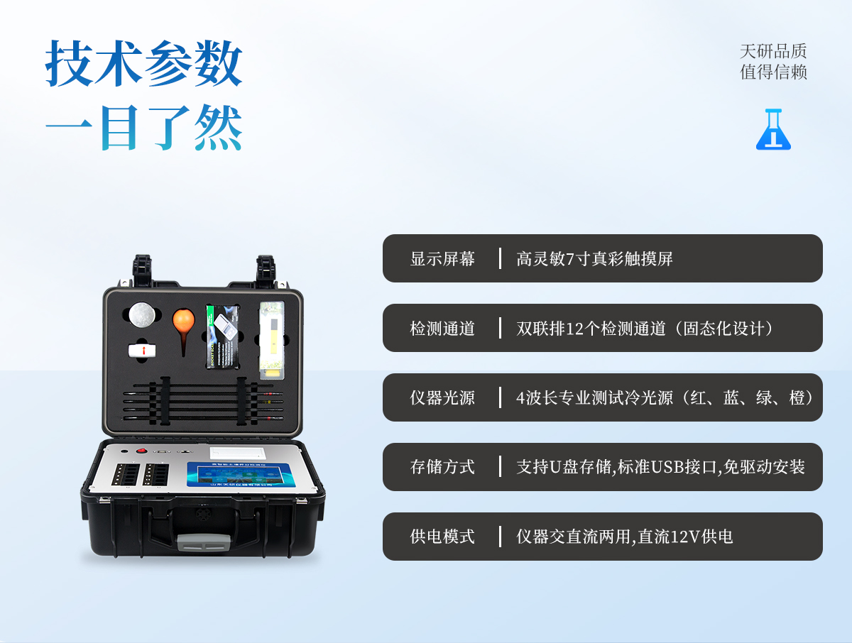 | 1、本儀器集各功能于一身,無需用戶自配附件,可靈活流動檢測。 | 2、安卓(Android)智能操作系統(tǒng),主控芯片采用ARM Cortex-A7,RK3288/4核處理器,主頻1.88Ghz,運(yùn)轉(zhuǎn)速度更快速,穩(wěn)定性更強(qiáng)。 | 3、雙聯(lián)排12個檢測通道(固態(tài)化設(shè)計),一次性可快速檢測12個樣品,極大提升檢測效率,降低檢測成本。 | 4、檢測過程中內(nèi)置校準(zhǔn)功能,智能恒流穩(wěn)壓,光強(qiáng)自動校準(zhǔn),確保檢測準(zhǔn)確度。 | 5、內(nèi)置作物專家施肥系統(tǒng),可對百余種全國農(nóng)業(yè)經(jīng)濟(jì)作物、果樹等的目標(biāo)產(chǎn)量計算推薦施肥量,依據(jù)施肥配方科學(xué)指導(dǎo)農(nóng)業(yè)生產(chǎn)。測土配方施肥結(jié)果可打印,打印內(nèi)容包含:作物種類、肥料種類、目標(biāo)產(chǎn)量、需求總量、建議施肥方案。 | 6、儀器標(biāo)配wifi無線上傳、4G聯(lián)網(wǎng)傳輸、GPRS無線遠(yuǎn)傳功能,快速上傳數(shù)據(jù)。 | 7、儀器內(nèi)置大容量內(nèi)存,支持查看全部歷史檢測記錄,以及傳輸所有檢測數(shù)據(jù)。 | 8、配有智慧云農(nóng)業(yè)平臺,儀器連入無線網(wǎng)絡(luò)后,可將檢測數(shù)據(jù)可選擇性或批量無線上傳,方便用戶進(jìn)行長期數(shù)據(jù)管理和可視化分析。 | 9、儀器配同時具有USB接口、以太網(wǎng)接口,并可隨時用U盤拷貝出數(shù)據(jù)。 | 10、可用手機(jī)隨時登錄云平臺在線移動查看歷史數(shù)據(jù) | 11、內(nèi)置植物營養(yǎng)診斷標(biāo)準(zhǔn)圖譜,根據(jù)各農(nóng)作物營養(yǎng)缺失的圖片,進(jìn)行葉面對比,診斷豐缺。 | 12、4波長專業(yè)測試?yán)涔庠矗t、藍(lán)、綠、橙),光源波長穩(wěn)定,長時間連續(xù)工作光源無溫漂現(xiàn)象,壽命長達(dá)10萬小時級別,重現(xiàn)性好,準(zhǔn)確度高。 | 13、比色池部分采用標(biāo)準(zhǔn)1cm比色皿,無機(jī)械位移及磨損,光路測試定位**,有效屏蔽外光干擾,保證檢測結(jié)果優(yōu)于國標(biāo)要求。 | 14、儀器系統(tǒng)內(nèi)帶有樣品前處理操作視頻,各種樣品檢測方法點擊視頻模塊即可觀看,檢測人員無需自學(xué)說明書,指導(dǎo)教學(xué)方便快速,方便新手快速操作。 | 15、內(nèi)置新一代高速熱敏打印機(jī)(無需色帶),打印內(nèi)容包含:檢測單位、檢測人員、檢測項目、通道號、吸光度、養(yǎng)分含量(mg/kg)、檢測時間、以及二維碼等信息 | 16、高靈敏7寸真彩觸摸屏,采用更加**和人性化操作,高清晰高交互顯示,大程度降低傳統(tǒng)儀器的繁瑣操作和失誤。 | 17、內(nèi)置時鐘功能,方便操作時間記錄,長期歷史追溯。 | 18、可設(shè)置多賬戶賬號密碼登錄,**UI交互界面,不同的用戶可自由添加編輯檢測信息,保存后可長期使用。 | 19、GPS功能:可在野外作業(yè)時記錄經(jīng)緯度地點,滿足特殊用戶需求。 | 20、內(nèi)置低電壓提示功能,可在檢測時明確電量,避免測試數(shù)據(jù)偏移,同時具有斷電保護(hù)功能,斷電自動保存數(shù)據(jù),防止數(shù)據(jù)丟失。 | 21、交直流兩用供電方式,內(nèi)置大容量充電鋰電池,滿電狀態(tài)下可連續(xù)工作10余小時,同時可外接車載電源蓄電。 | 22、儀器具有中英文切換功能,可滿足出口要求。 | 23、高強(qiáng)度PVC工程塑料手提箱設(shè)計,堅固耐用,便于攜帶。 |