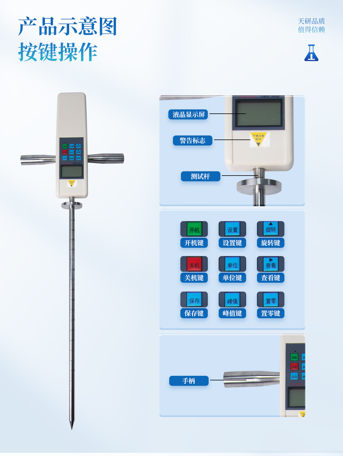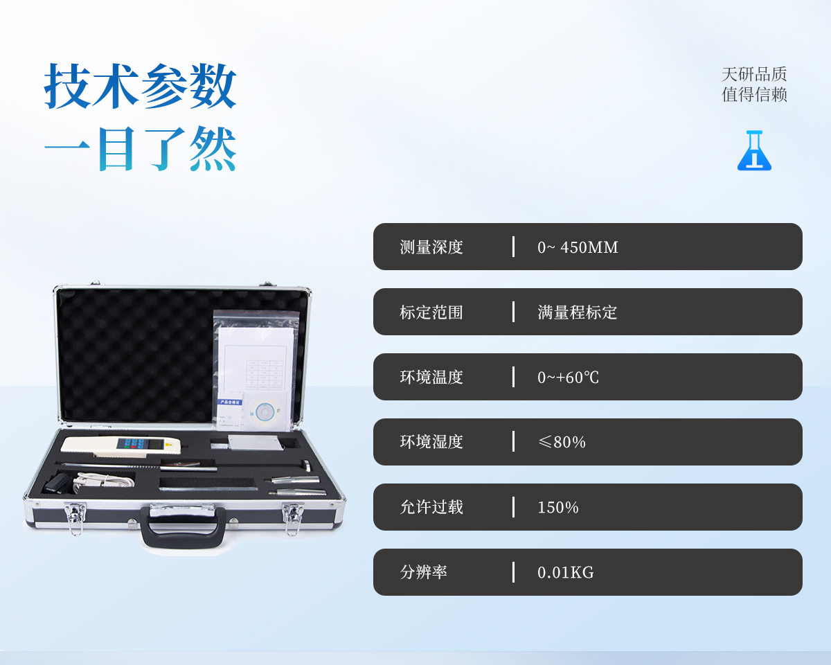 | 型號(hào):TY-JSD2 | 最大負(fù)荷:100Kg (Kg、N和Lb三種單位可自由轉(zhuǎn)換) | 分辨率:0.01Kg | 精度:±1% | 測(cè)量深度:0~ 450mm | 電源:充電電源220VIAC,電池連續(xù)工作時(shí)間6~8小時(shí) | 穩(wěn)定性:溫漂0.2uV/℃ (o-60℃),零漂≤0.1%/8小時(shí)/F·s | 標(biāo)定范圍:滿量程標(biāo)定 | 環(huán)境溫度:0~+60℃ | 環(huán)境濕度:≤80% | 允許過載:150% | 供電方式:鎳氰電池組/220V AC充電4~6小時(shí) |