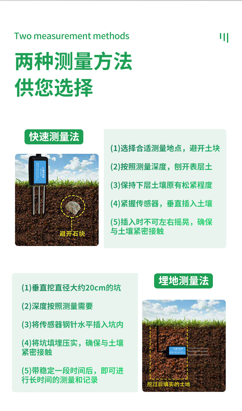 MEC10土壤水分/電導(dǎo)率/溫度傳感器性能穩(wěn)定靈敏度高,是觀測(cè)和研究鹽漬土的發(fā)生、演變、改良以及水鹽動(dòng)態(tài)的重要工具。通過測(cè)量土壤的介電常數(shù),能直接穩(wěn)定地反映各種土壤的真實(shí)水分含量。MEC10土壤水分傳感器可測(cè)量土壤水分的體積百分比,是符合目前**標(biāo)準(zhǔn)的土壤水分測(cè)量方法。適用于土壤墑情監(jiān)測(cè)、科學(xué)試驗(yàn)、節(jié)水灌溉、溫室大棚、花卉蔬菜、草地牧場(chǎng)、土壤速測(cè)、植物培養(yǎng)、污水處理、精細(xì)農(nóng)業(yè)等場(chǎng)合。