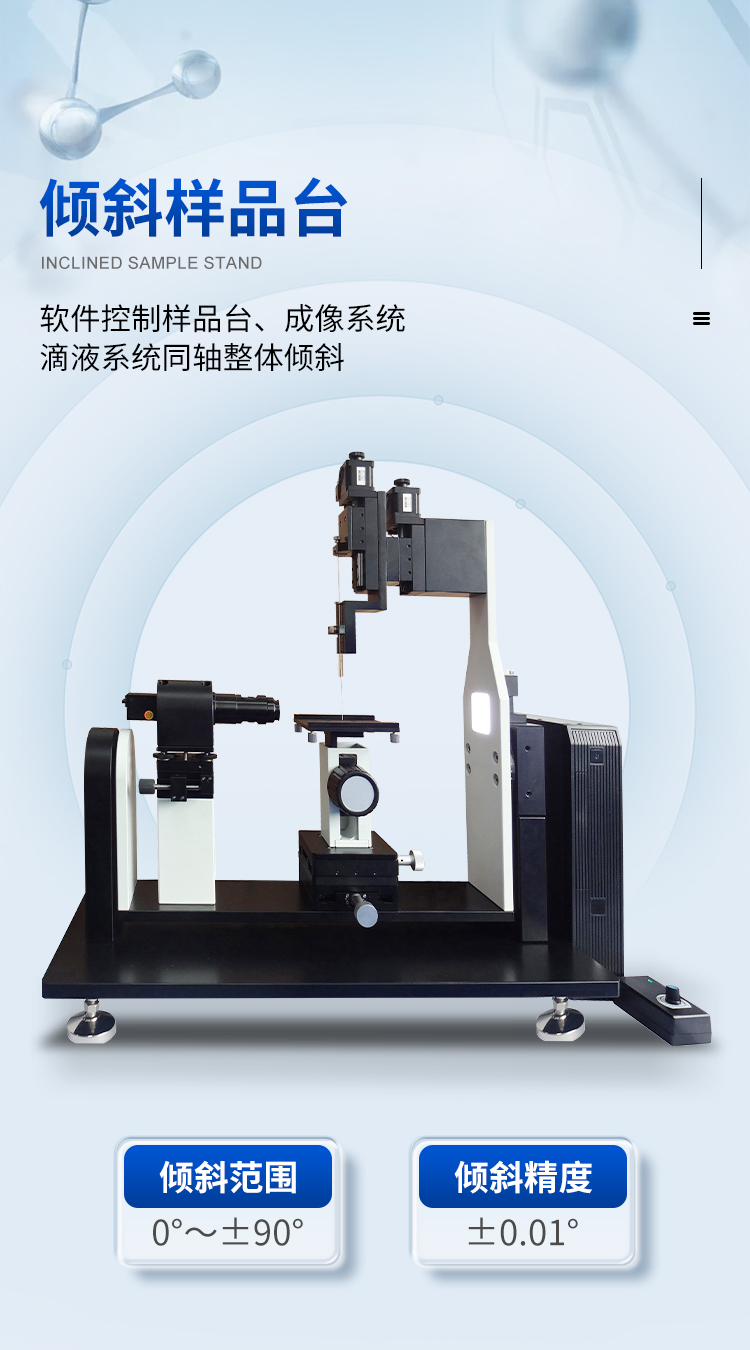 本機(jī)除了利用停滴法測(cè)試靜態(tài)接觸角外,更側(cè)重于利用傾斜板法測(cè)試和分析動(dòng)態(tài)接觸角(包括前進(jìn)接觸角、后退接觸角和滾動(dòng)角);同時(shí)也可以測(cè)試液體表面張力、估算固體表面能和分析潤(rùn)濕性。廣泛應(yīng)用于生物化工、納米技術(shù)、涂層工藝、耐水材料、科教軍工等尖端領(lǐng)域的測(cè)試與研究。