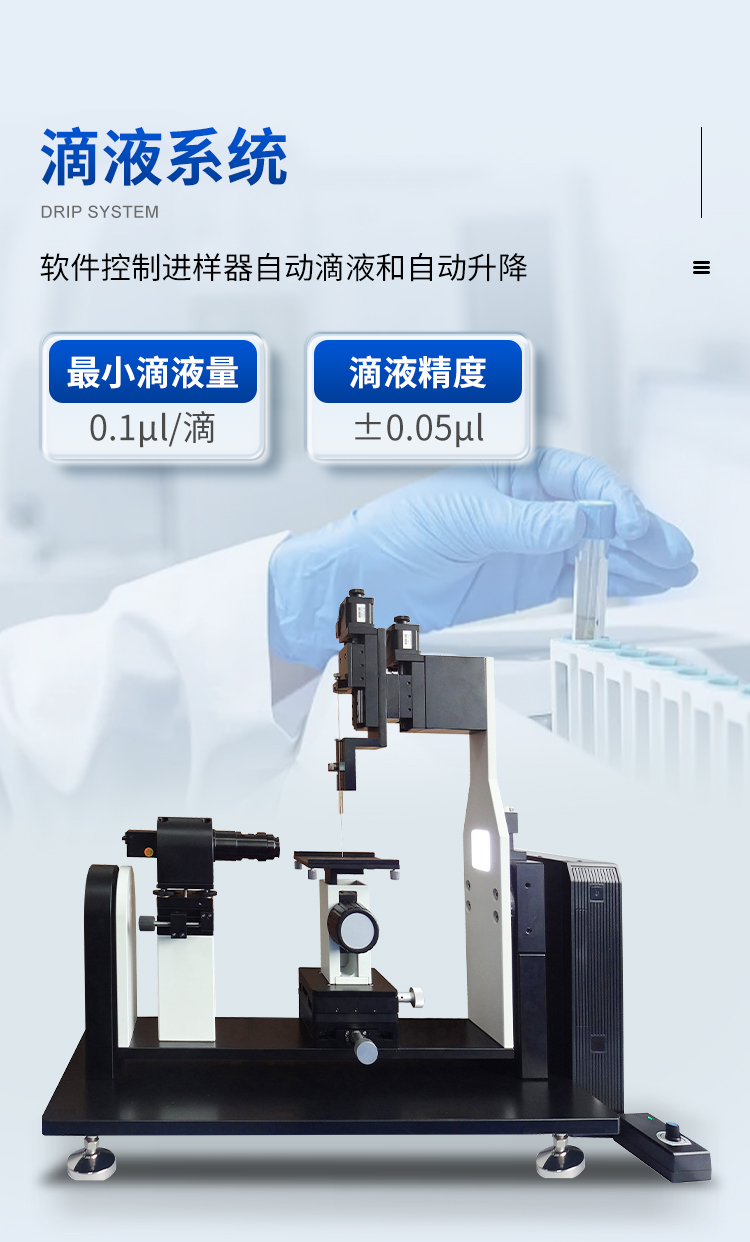 功能概述: 本機(jī)用于測試和分析液體在固體表面的接觸角、液體的表面張力、固體的表面能等。實現(xiàn)對固體表面的親/疏水性分析、潤濕性分析、潔凈度檢測、處理工藝效果評估,以及液體被競爭、吸附、吸收和鋪展等過程分析。廣泛應(yīng)用于化工、醫(yī)藥、食品、電子、印染、噴涂、軍工和科教等眾多領(lǐng)域的測試與研究。