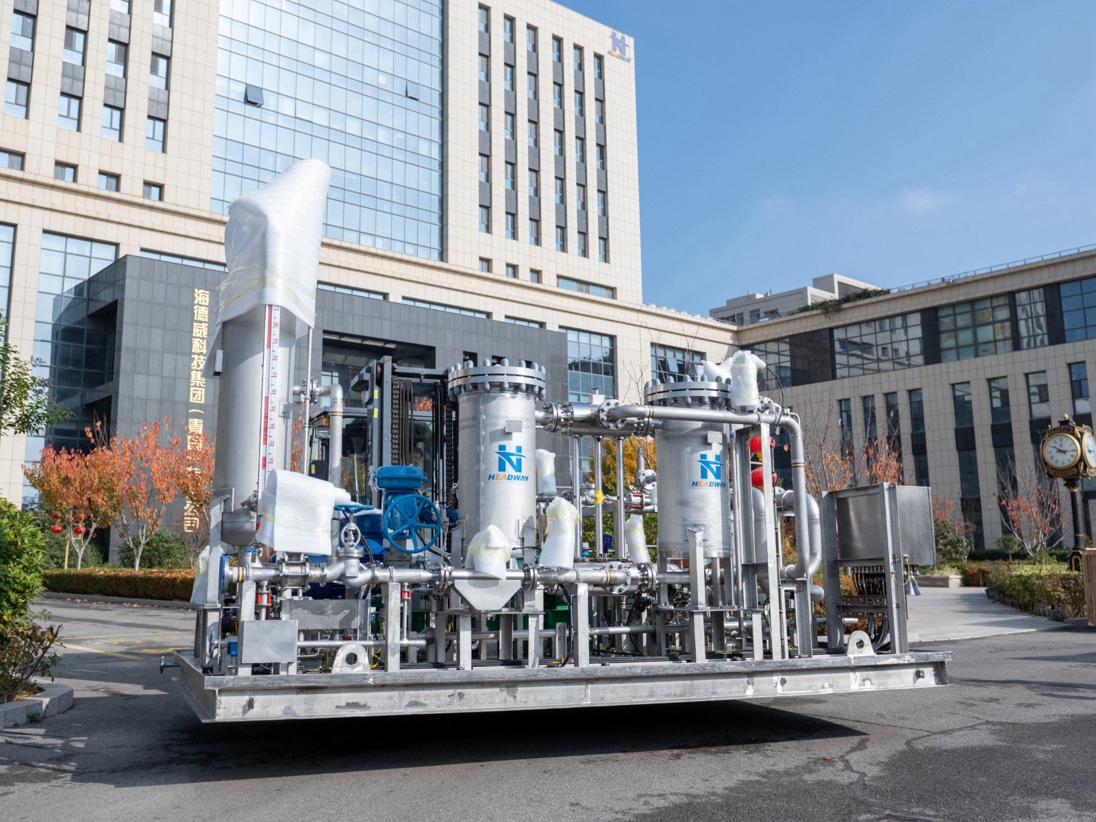 海德威將為玉柴船動船用氨燃料低速機測試平臺提供包含氨燃料儲罐、氨燃料供給模塊、卸車壓縮機、氨燃料輸送泵、氨逃逸吸收系統、可燃氣體探測和雙壁管在內的整套氨燃料供給系統解決方案,該測試平臺可兼容WinGD與MAN兩大主流授權商的氨燃料主機。同時,海德威依托「EPC模式」,將負責從項目工程設計、土建施工、設備制造到安裝調試的全生命周期流程,提供一站式“交鑰匙”服務。