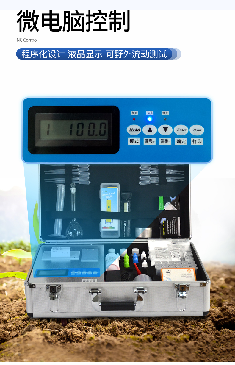 產(chǎn)品簡(jiǎn)介: 配套齊全:該儀器集藥、器、儀為一體,攜帶方便,相當(dāng)于一個(gè)小型移動(dòng)實(shí)驗(yàn)室,無(wú)需用戶(hù)自配附件,亦可靈活野外流動(dòng)測(cè)試。適于農(nóng)業(yè)服務(wù)部門(mén)或農(nóng)資經(jīng)銷(xiāo)商、高教院校、科研院所、合作社、肥料廠商、大種植戶(hù)測(cè)土施肥和鑒別肥料真假及環(huán)保檢測(cè)應(yīng)用。 檢測(cè)功能全:測(cè)試項(xiàng)目國(guó)內(nèi)外全面,除標(biāo)