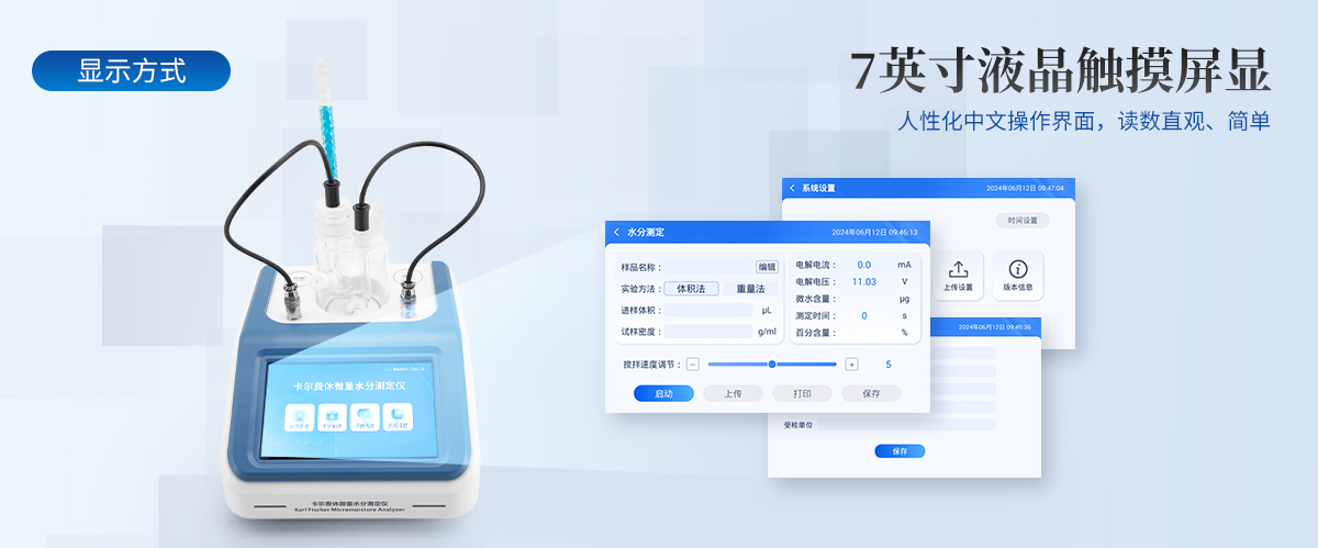 | 1.采用了原裝進(jìn)口7.0英寸800*480像素真彩TFT-LCD大屏幕彩色顯示器,鍵盤采用人體感應(yīng)式觸摸屏,全中文操作界面,軟件界面顯示直觀大方,內(nèi)容豐富,操作內(nèi)容方便自如,漢字提示,靈活、具有檢測(cè)靈敏閾高、操作簡(jiǎn)單、測(cè)試速度快、重復(fù)性好等特點(diǎn). | 2.儀器具有試驗(yàn)結(jié)果存儲(chǔ)、打印、計(jì)算功能;樣品測(cè)定過程由儀器自動(dòng)控制,攪拌、測(cè)定60秒左右自動(dòng)完成,直接顯示測(cè)定結(jié)果;全密封滴定池瓶,避免試劑與人接觸,也避免環(huán)境濕度的影響;儀器中文液晶顯示,并具有自動(dòng)計(jì)算和打印功能,能打印出百分含量、樣品編號(hào)、試驗(yàn)員、實(shí)驗(yàn)日期等內(nèi)容;儀器準(zhǔn)確度為:①水含量小于10微克水時(shí),測(cè)量值誤差小于2ug水;②水含量在10微克-1000微克水時(shí),測(cè)量誤差≤2ug水;③水含量在1000微克以上時(shí),測(cè)量值誤差≤0.2%(不含進(jìn)樣誤差); | 3.核心主機(jī)采用TI 公司AM3354處理器,Cortex-A8內(nèi)核,1GHz主頻;操作系統(tǒng)采用Windows Embedded Compact 7實(shí)時(shí)工控系統(tǒng)。徹底擯棄了無核無操裸奔的單片機(jī),真正實(shí)現(xiàn)了儀器操控的現(xiàn)代化,使儀器步入新的智能時(shí)代。 |