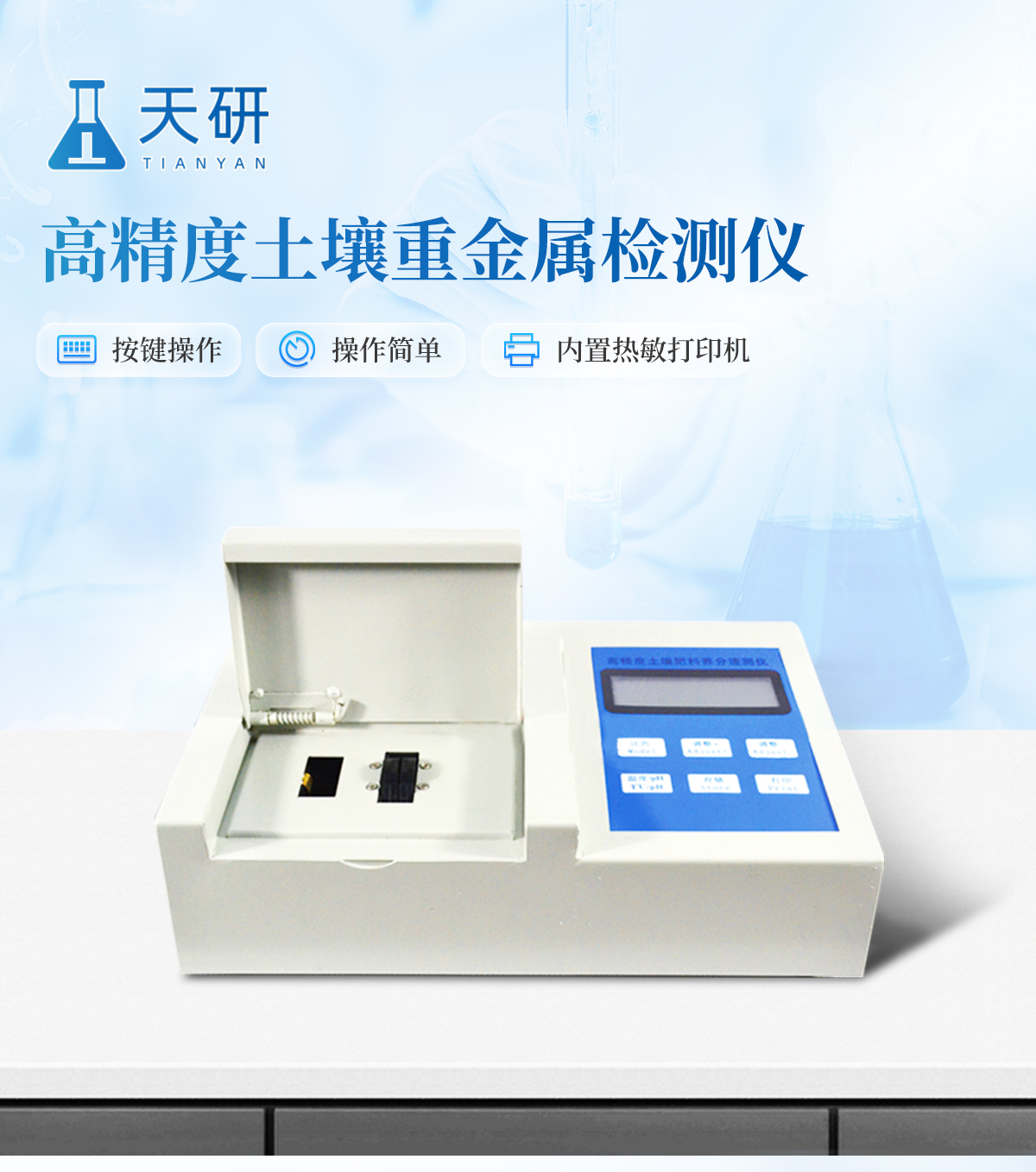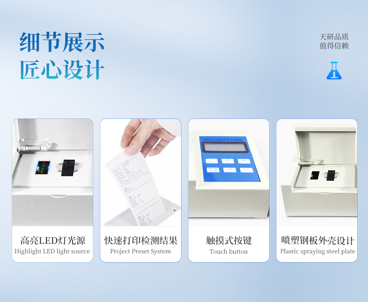 | 性能可靠,工作穩(wěn)定性均優(yōu)于國(guó)家標(biāo)準(zhǔn)JJG79-90標(biāo)準(zhǔn)5--6倍,重復(fù)性達(dá)到光柵類分光光度計(jì)指標(biāo),采用微處理器技術(shù),單片機(jī)控制,觸摸按鍵,操作簡(jiǎn)便。 | 重金屬測(cè)試采用聯(lián)合消化和分項(xiàng)測(cè)試技術(shù),簡(jiǎn)化測(cè)試流程,減少測(cè)試時(shí)間,大大提高測(cè)試效率,提高測(cè)試精度。 | 擴(kuò)展性強(qiáng),該儀不僅可以專用于重金屬的檢測(cè)還可以擴(kuò)展測(cè)定土壤、肥料、植株中養(yǎng)分的測(cè)試(HM-ZSA型),一機(jī)多用。 | 土壤重金屬檢測(cè)儀集藥,器,儀于一體,相當(dāng)于一個(gè)小型實(shí)驗(yàn)室, 兩個(gè)鋁合金箱體,易于攜帶,便于現(xiàn)場(chǎng)測(cè)試,流動(dòng)服務(wù)。適于基層檢測(cè)部門對(duì)含有重金屬污染的蔬菜、水果等食品進(jìn)行篩選。 |