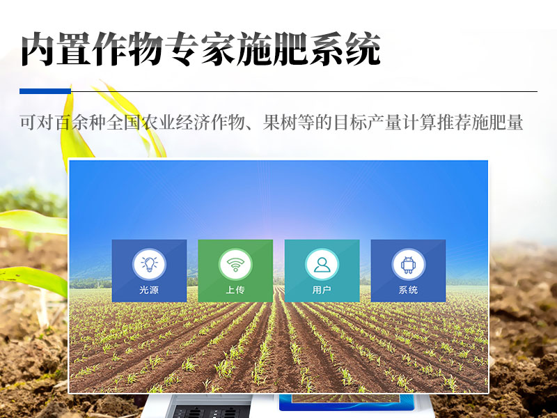 | 1、本儀器集各功能于一身,無(wú)需用戶自配附件,可靈活流動(dòng)檢測(cè)。 | 2、安卓(Android)智能操作系統(tǒng),主控芯片采用ARM Cortex-A7,RK3288/4核處理器,主頻1.88Ghz,運(yùn)轉(zhuǎn)速度更快速,穩(wěn)定性更強(qiáng)。 | 3、雙聯(lián)排12個(gè)檢測(cè)通道(固態(tài)化設(shè)計(jì)),一次性可快速檢測(cè)12個(gè)樣品,極大提升檢測(cè)效率,降低檢測(cè)成本。 | 4、檢測(cè)過(guò)程中內(nèi)置校準(zhǔn)功能,智能恒流穩(wěn)壓,光強(qiáng)自動(dòng)校準(zhǔn),確保檢測(cè)準(zhǔn)確度。 | 5、內(nèi)置作物專家施肥系統(tǒng),可對(duì)百余種全國(guó)農(nóng)業(yè)經(jīng)濟(jì)作物、果樹(shù)等的目標(biāo)產(chǎn)量計(jì)算推薦施肥量,依據(jù)施肥配方科學(xué)指導(dǎo)農(nóng)業(yè)生產(chǎn)。測(cè)土配方施肥結(jié)果可打印,打印內(nèi)容包含:作物種類、肥料種類、目標(biāo)產(chǎn)量、需求總量、建議施肥方案。 | 6、儀器標(biāo)配wifi無(wú)線上傳、4G聯(lián)網(wǎng)傳輸、GPRS無(wú)線遠(yuǎn)傳功能,快速上傳數(shù)據(jù)。 | 7、儀器內(nèi)置大容量?jī)?nèi)存,支持查看全部歷史檢測(cè)記錄,以及傳輸所有檢測(cè)數(shù)據(jù)。 | 8、配有智慧云農(nóng)業(yè)平臺(tái),儀器連入無(wú)線網(wǎng)絡(luò)后,可將檢測(cè)數(shù)據(jù)可選擇性或批量無(wú)線上傳,方便用戶進(jìn)行長(zhǎng)期數(shù)據(jù)管理和可視化分析。 | 9、儀器同時(shí)具有USB接口、以太網(wǎng)接口,并可隨時(shí)用U盤拷貝出數(shù)據(jù)。 | 10、可用手機(jī)隨時(shí)登錄云平臺(tái)在線移動(dòng)查看歷史數(shù)據(jù) | 11、內(nèi)置植物營(yíng)養(yǎng)診斷標(biāo)準(zhǔn)圖譜,根據(jù)各農(nóng)作物營(yíng)養(yǎng)缺失的圖片,進(jìn)行葉面對(duì)比,診斷豐缺。 | 12、4波長(zhǎng)專業(yè)測(cè)試?yán)涔庠矗t、藍(lán)、綠、橙),光源波長(zhǎng)穩(wěn)定,長(zhǎng)時(shí)間連續(xù)工作光源無(wú)溫漂現(xiàn)象,壽命長(zhǎng)達(dá)10萬(wàn)小時(shí)級(jí)別,重現(xiàn)性好,準(zhǔn)確度高。 | 13、比色池部分采用標(biāo)準(zhǔn)1cm比色皿,無(wú)機(jī)械位移及磨損,光路測(cè)試定位**,有效屏蔽外光干擾,保證檢測(cè)結(jié)果優(yōu)于國(guó)標(biāo)要求。 | 14、儀器系統(tǒng)內(nèi)帶有樣品前處理操作視頻,各種樣品檢測(cè)方法點(diǎn)擊視頻模塊即可觀看,檢測(cè)人員無(wú)需自學(xué)說(shuō)明書(shū),指導(dǎo)教學(xué)方便快速,方便新手快速操作。 | 15、內(nèi)置新一代高速熱敏打印機(jī)(無(wú)需色帶),打印內(nèi)容包含:檢測(cè)單位、檢測(cè)人員、檢測(cè)項(xiàng)目、通道號(hào)、吸光度、養(yǎng)分含量(mg/kg)、檢測(cè)時(shí)間、以及二維碼等信息 | 16、高靈敏7寸真彩觸摸屏,采用更加**和人性化操作,高清晰高交互顯示,大程度降低傳統(tǒng)儀器的繁瑣操作和失誤。 | 17、內(nèi)置時(shí)鐘功能,方便操作時(shí)間記錄,長(zhǎng)期歷史追溯。 | 18、可設(shè)置多賬戶賬號(hào)密碼登錄,**UI交互界面,不同的用戶可自由添加編輯檢測(cè)信息,保存后可長(zhǎng)期使用。 | 19、GPS功能:可在野外作業(yè)時(shí)記錄經(jīng)緯度地點(diǎn),滿足特殊用戶需求。 | 20、內(nèi)置低電壓提示功能,可在檢測(cè)時(shí)明確電量,避免測(cè)試數(shù)據(jù)偏移,同時(shí)具有斷電保護(hù)功能,斷電自動(dòng)保存數(shù)據(jù),防止數(shù)據(jù)丟失。 | 21、交直流兩用供電方式,內(nèi)置大容量充電鋰電池,滿電狀態(tài)下可連續(xù)工作10余小時(shí),同時(shí)可外接車載電源蓄電。 | 22、儀器具有中英文切換功能,可滿足出口要求。 |