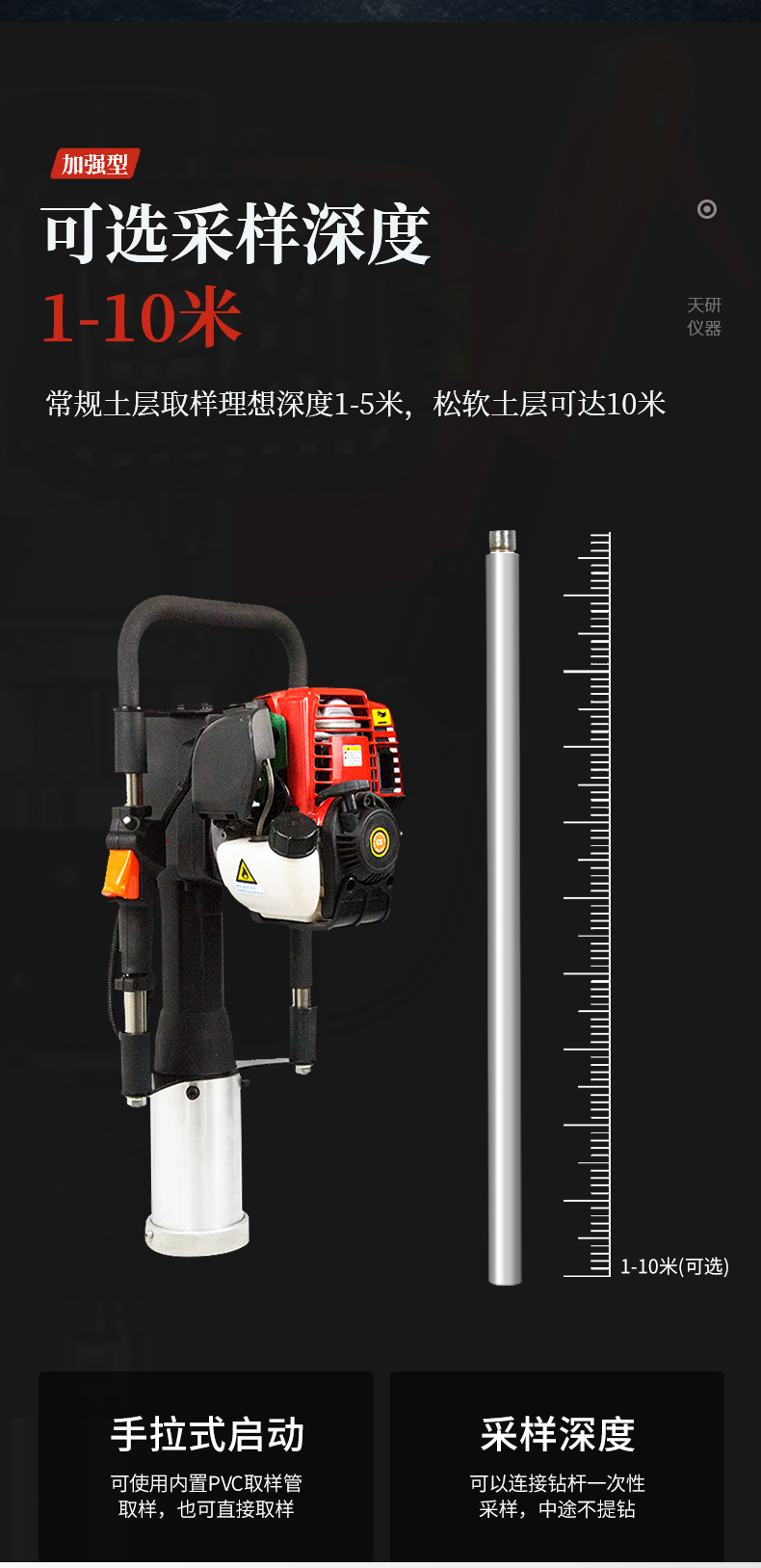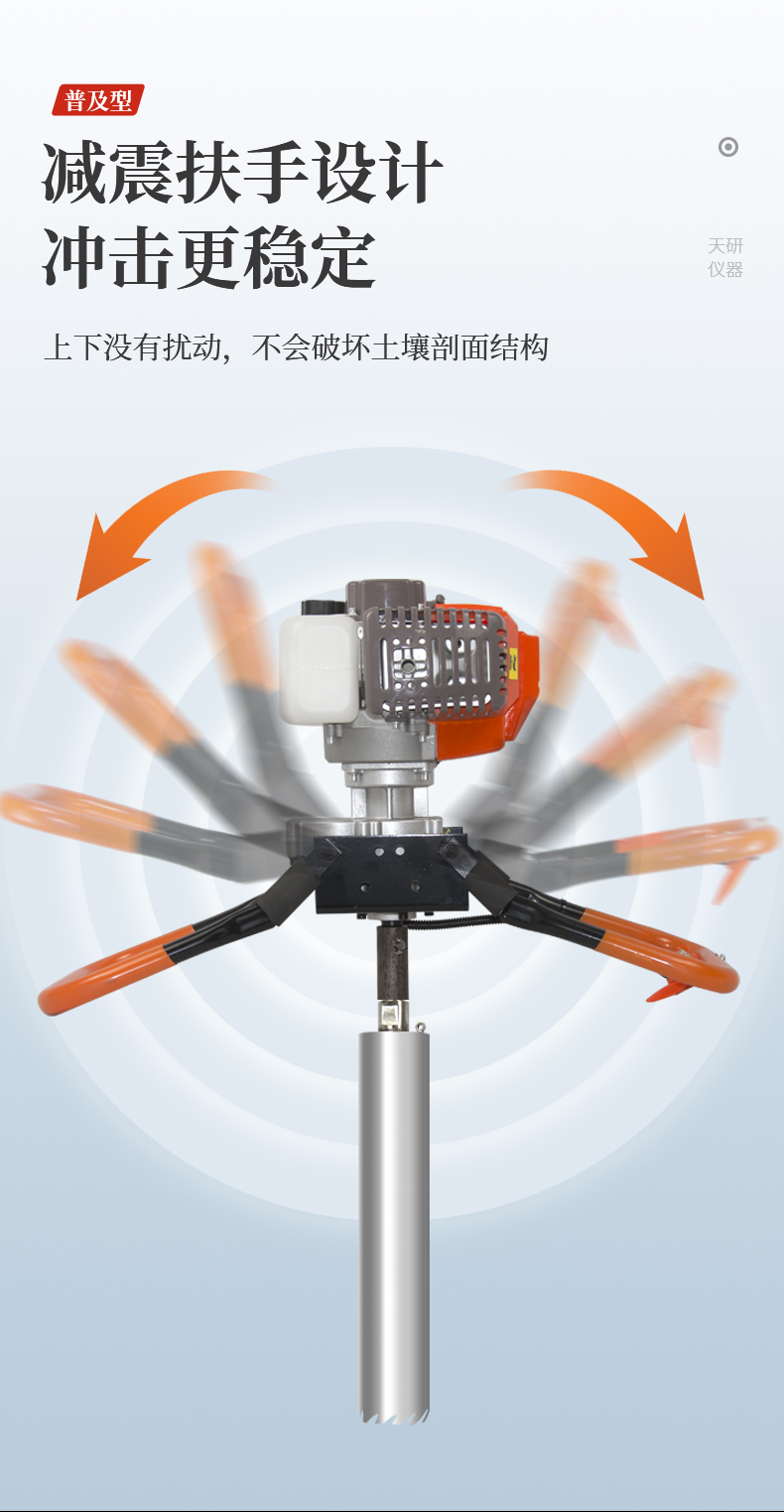 產(chǎn)品介紹: 動力(汽油)土壤采樣器(汽油動力土鉆)土壤采樣器是本廠汲取廣大客戶意見、經(jīng)多方用戶需求和市場調(diào)研,開發(fā)出的一款動力(汽油)土壤采樣器。儀器采用汽油機(jī)驅(qū)動、以大幅減免土壤取樣人員的勞動力和快速、取樣簡便而著稱。 用途: 土壤結(jié)構(gòu)描述