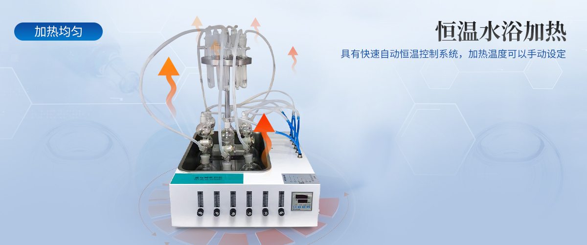 | 1.大容量反應(yīng)瓶,可同時(shí)處理多個(gè)樣品。 | 2.鹽酸口、氣體進(jìn)口、出口三口一體且相互獨(dú)立,操作會(huì)不干擾。 | 3.恒溫水浴加熱,具有快速自動(dòng)恒溫控制系統(tǒng),加熱溫度可以手動(dòng)設(shè)定。 | 4.由升降位置固定旋鈕調(diào)節(jié)樣品架及配氣系統(tǒng)的升降旋轉(zhuǎn)樣品架,正面安裝樣品,操作方便。 | 5.每個(gè)樣品的氮?dú)饬髁开?dú)立控制調(diào)節(jié)或關(guān)閉,針閥氣體流量計(jì)準(zhǔn)確控制和顯示氣體總消耗量。 |