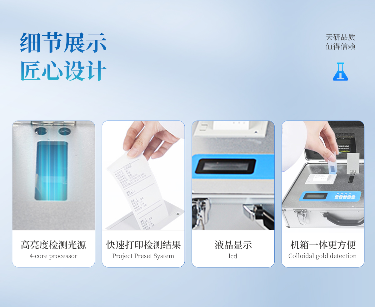 | 全國(guó)獨(dú)家《機(jī)箱/藥劑一體式鋁合金機(jī)箱》專利設(shè)計(jì),便于攜帶、堅(jiān)固耐用,配套成品藥劑 | 微電腦控制,數(shù)字化線路、程序化設(shè)計(jì),液晶顯示,交直流兩用,可野外流動(dòng)測(cè)試,最大程度降低操作者的失誤和勞動(dòng)強(qiáng)度。 | 分辨率:0.001,觸摸式按鍵,內(nèi)置高檔熱敏打印機(jī),可打印測(cè)試結(jié)果。 | 可檢測(cè)土壤及化肥、有機(jī)肥、植株中的有機(jī)質(zhì)含量,土壤酸堿度,含鹽量(擴(kuò)展)。 | 土壤養(yǎng)分速測(cè)儀采用高亮度 LED 燈作為光源, 硅半導(dǎo)體作為信號(hào)接收系統(tǒng), 壽命長(zhǎng)達(dá)10萬(wàn)小時(shí)級(jí)別。光源穩(wěn)定,一致性好。 | 比色槽部分采用單通道、雙光路設(shè)計(jì),無(wú)機(jī)械位移及磨損,光路測(cè)試定位**,保證測(cè)定結(jié)果精度。 |