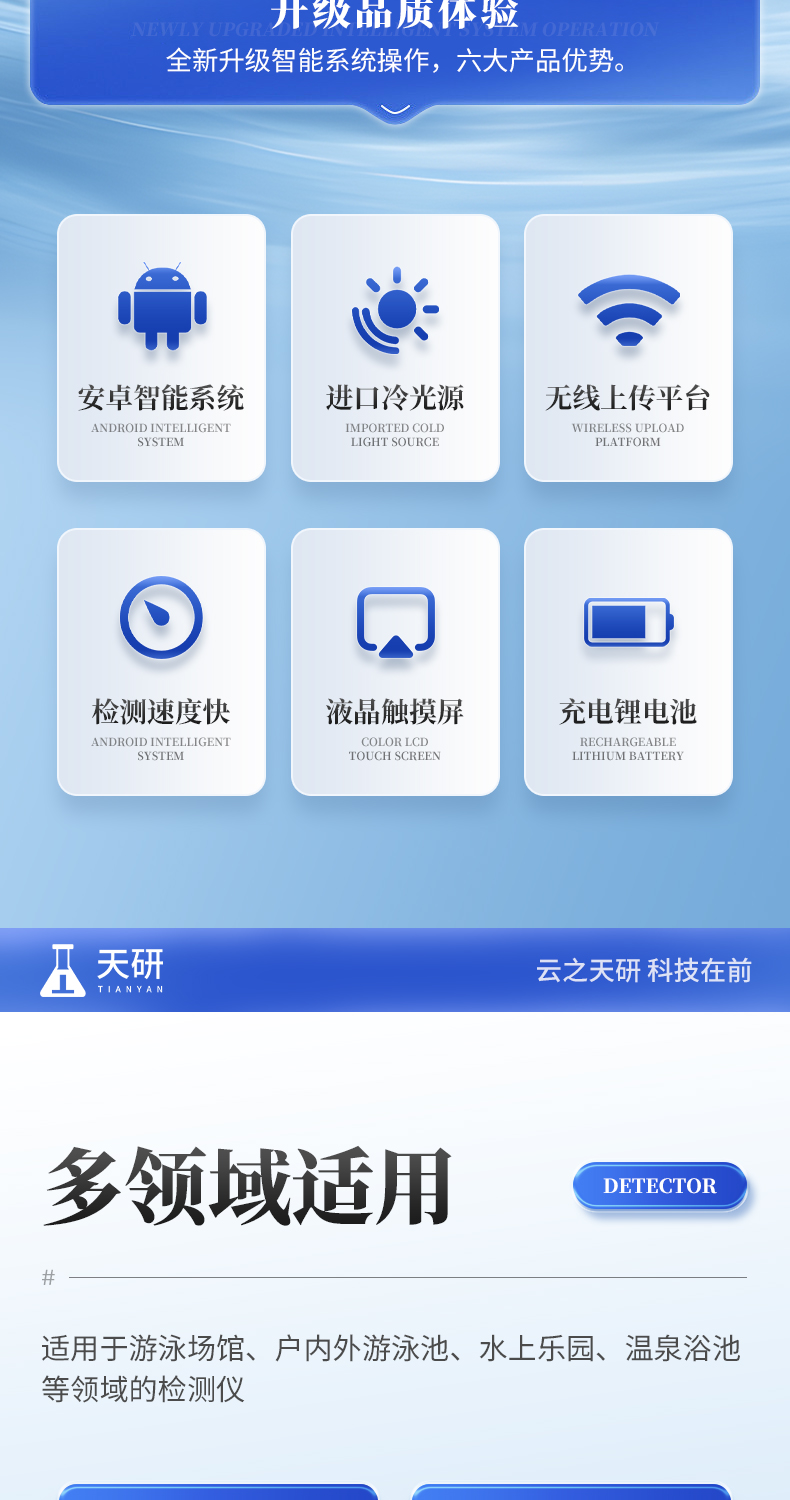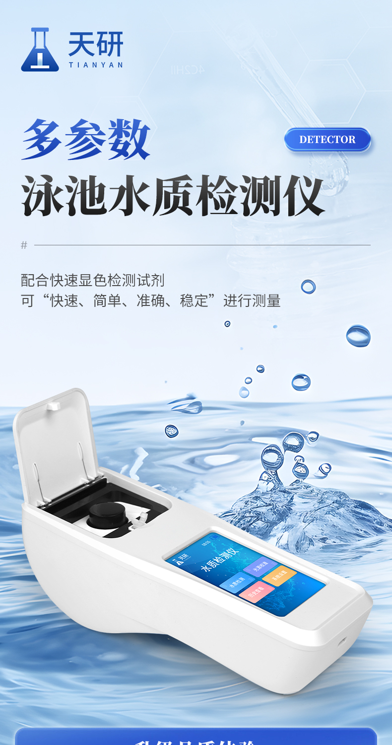 泳池水質(zhì)檢測(cè)儀是一款適用于游泳場(chǎng)館、戶內(nèi)外游泳池、水上樂園、溫泉浴池等領(lǐng)域的檢測(cè)儀,配合快速顯色檢測(cè)試劑,可“快速、簡(jiǎn)單、準(zhǔn)確、穩(wěn)定”進(jìn)行測(cè)量,擁有精美的外觀造型,簡(jiǎn)單的操作界面,準(zhǔn)確的檢測(cè)系統(tǒng),幫助用戶獲得精細(xì)的數(shù)據(jù),可更準(zhǔn)確、有效的分析水體狀況。