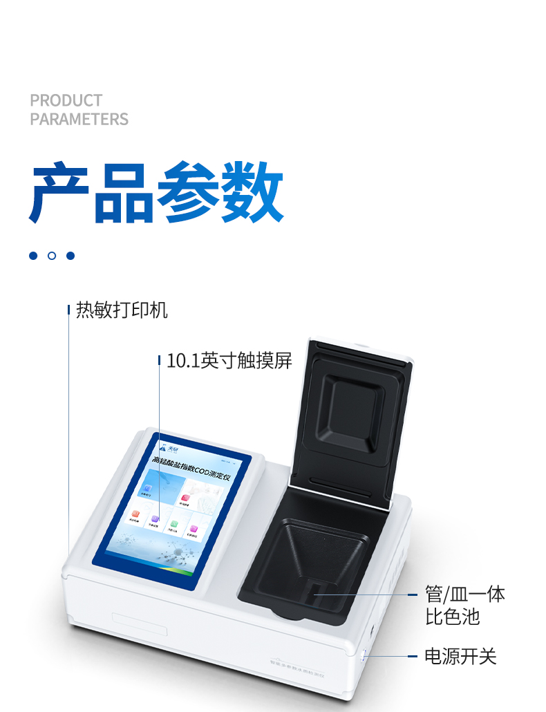 高錳酸鹽指數(shù)檢測儀(CODMn)是參考標(biāo)準(zhǔn)《GB/T 11892-1989 水質(zhì)高錳酸鹽指數(shù)的測定》設(shè)計(jì)制造,適用于國內(nèi)外眾多檢測標(biāo)準(zhǔn)。 本儀器采用錳法測定水中的COD指標(biāo),又稱CODMn或高錳酸鹽指數(shù),兼具智能數(shù)據(jù)分析功能,圖表、列表顯示數(shù)據(jù),分析一目了然;高清晰度彩色液晶觸摸顯示屏,Android智能操