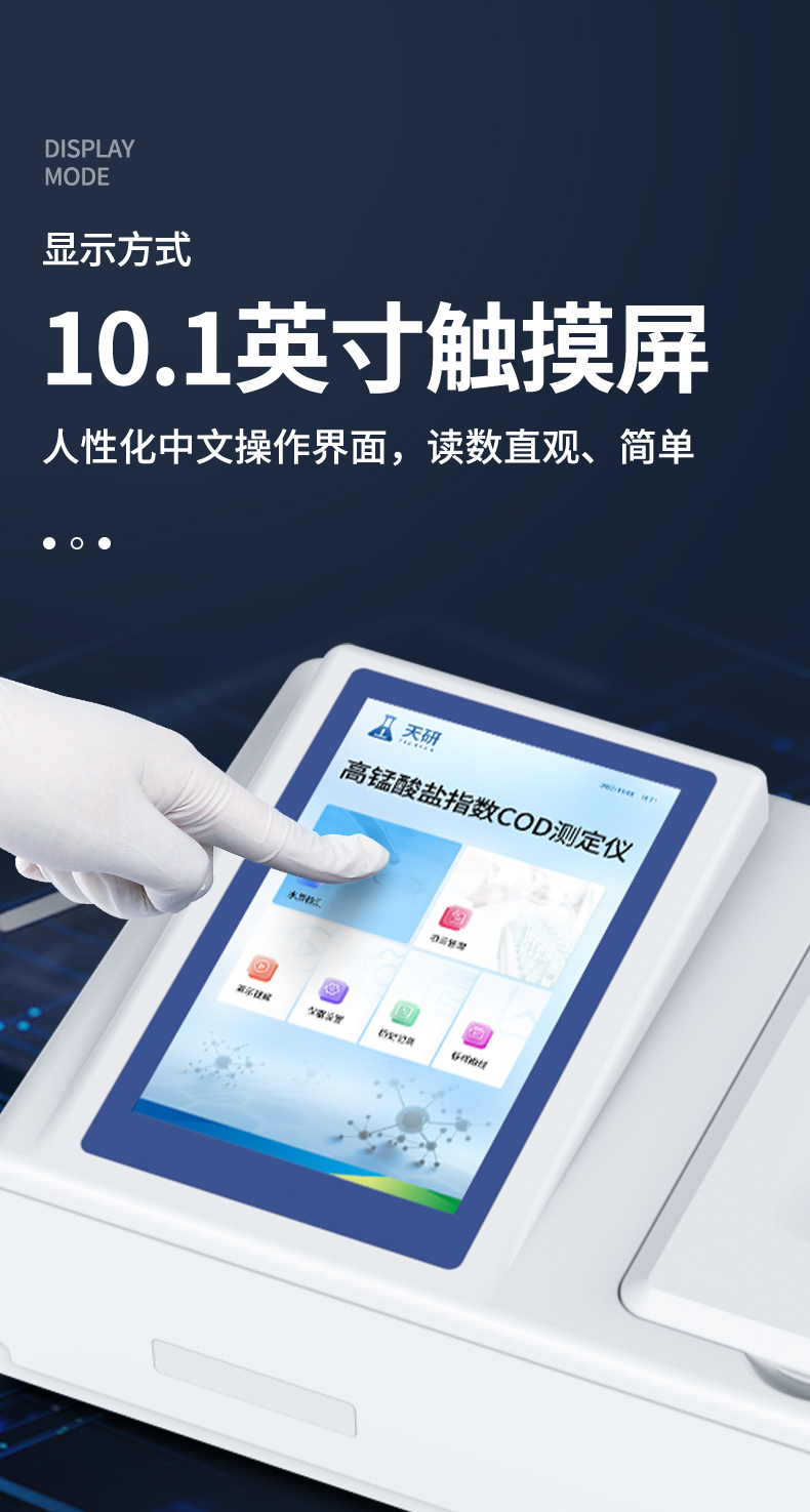 高錳酸鹽指數(shù)檢測儀(CODMn)是參考標(biāo)準(zhǔn)《GB/T 11892-1989 水質(zhì)高錳酸鹽指數(shù)的測定》設(shè)計(jì)制造,適用于國內(nèi)外眾多檢測標(biāo)準(zhǔn)。 本儀器采用錳法測定水中的COD指標(biāo),又稱CODMn或高錳酸鹽指數(shù),兼具智能數(shù)據(jù)分析功能,圖表、列表顯示數(shù)據(jù),分析一目了然;高清晰度彩色液晶觸摸顯示屏,Android智能操作系統(tǒng),中文顯示界面,中英文鍵盤,人性化操作,使用更簡單。 廣泛適用于地表水、自來水等低含量COD的測定。