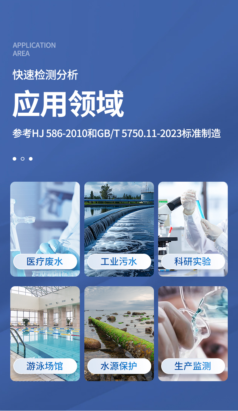 適用于 飲用水、自來水、醫(yī)療廢水、工業(yè)污、河流監(jiān)測、游泳場館、水源保護(hù)、生產(chǎn)監(jiān)測、科研實(shí)驗(yàn)等。