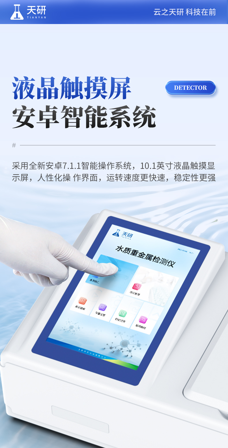 多參數(shù)水質(zhì)重金屬檢測(cè)儀是完全參考國(guó)家標(biāo)準(zhǔn)、環(huán)境標(biāo)準(zhǔn)等相關(guān)標(biāo)準(zhǔn)設(shè)計(jì)制造,適用于國(guó)內(nèi)外眾多檢測(cè)標(biāo)準(zhǔn)。 主要檢測(cè)水質(zhì)六價(jià)鉻、總鉻、鉛、鎘、汞、砷、銅、總銅、鋅、總鋅、鐵、總鐵、鎳、總鎳、錳、總錳、鈦、釩、銀、鋁、錫、鈹、鋇、銻、鈷等重金屬含量指標(biāo);本儀器兼具智能數(shù)據(jù)分析功能,圖表、列表顯示數(shù)據(jù),分析一目了然;高清晰度彩色液晶觸摸顯示屏,Android智能操作系統(tǒng),中文顯示界面,中英文鍵盤,人性化操作,使用更簡(jiǎn)單。