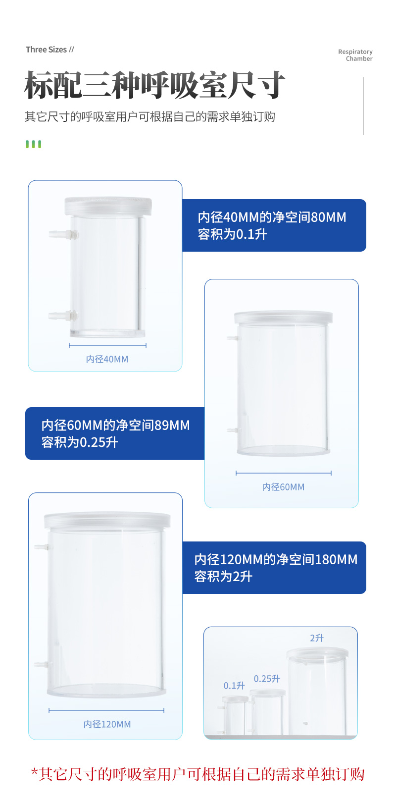 其它尺寸的呼吸室用戶可根據(jù)自己的需求單獨(dú)訂購