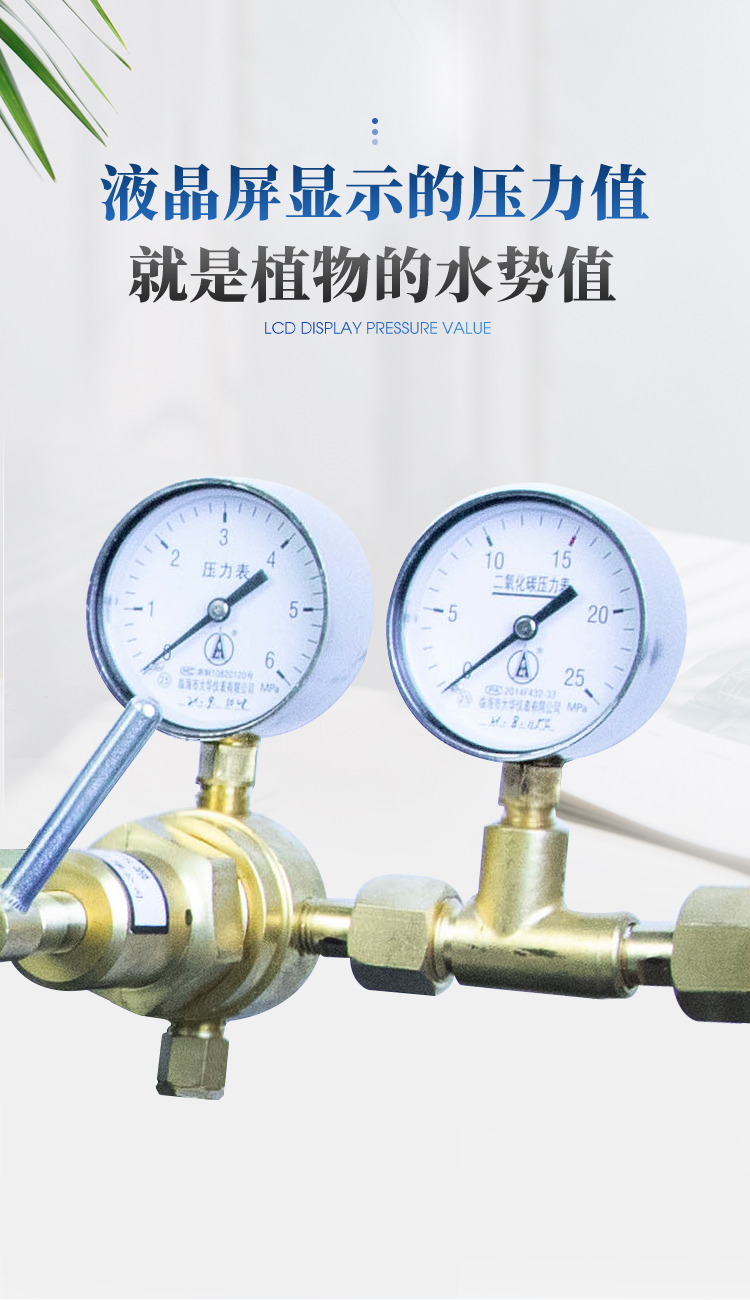| 3、MPa與Bar兩種測量單位可供選擇 | 4、液晶屏顯示的壓力值就是當(dāng)前植物的水勢值 |