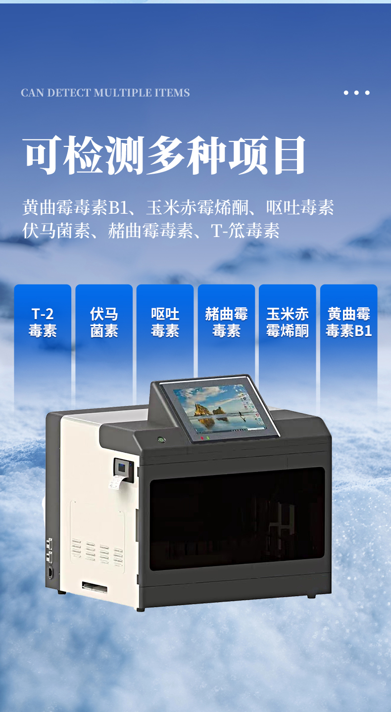本產(chǎn)品是以真菌毒素分析前處理技術(shù)開(kāi)發(fā)的全自動(dòng)檢測(cè)儀,可自動(dòng)完成提取、混勻、移液、孵育、檢測(cè)、數(shù)據(jù)處理、打印等全流程工作。該儀器基于光電檢測(cè)原理的免疫熒光檢測(cè)技術(shù),配套專(zhuān)用熒光免疫試劑,通過(guò)自動(dòng)化樣品前處理替代人工操作,可檢測(cè)黃曲霉B1、嘔吐毒素等多種真菌毒素,實(shí)用性強(qiáng)、操作方便,能節(jié)省大量人力物力時(shí)間成本,適用于糧油質(zhì)檢、糧庫(kù)收儲(chǔ)、飼料企業(yè)、食品加工、第三方檢測(cè)、政府監(jiān)管等單位。