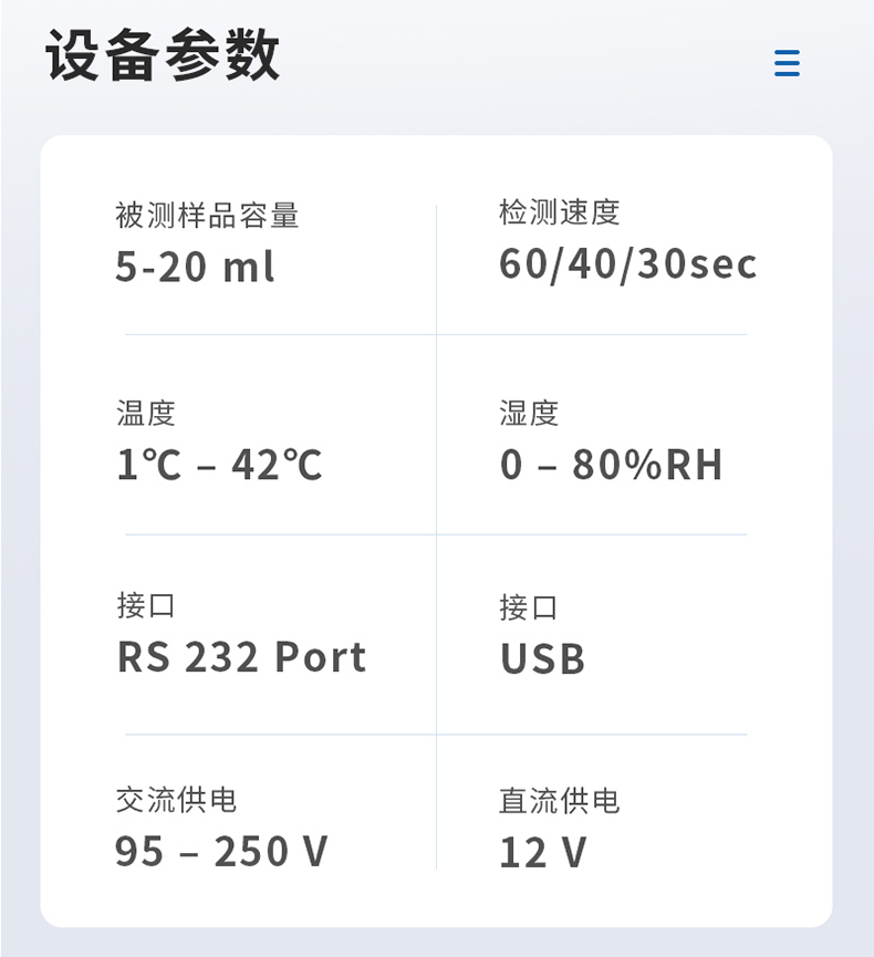 | 脂肪 | 0℅ -25℅ | ±0.1℅ |