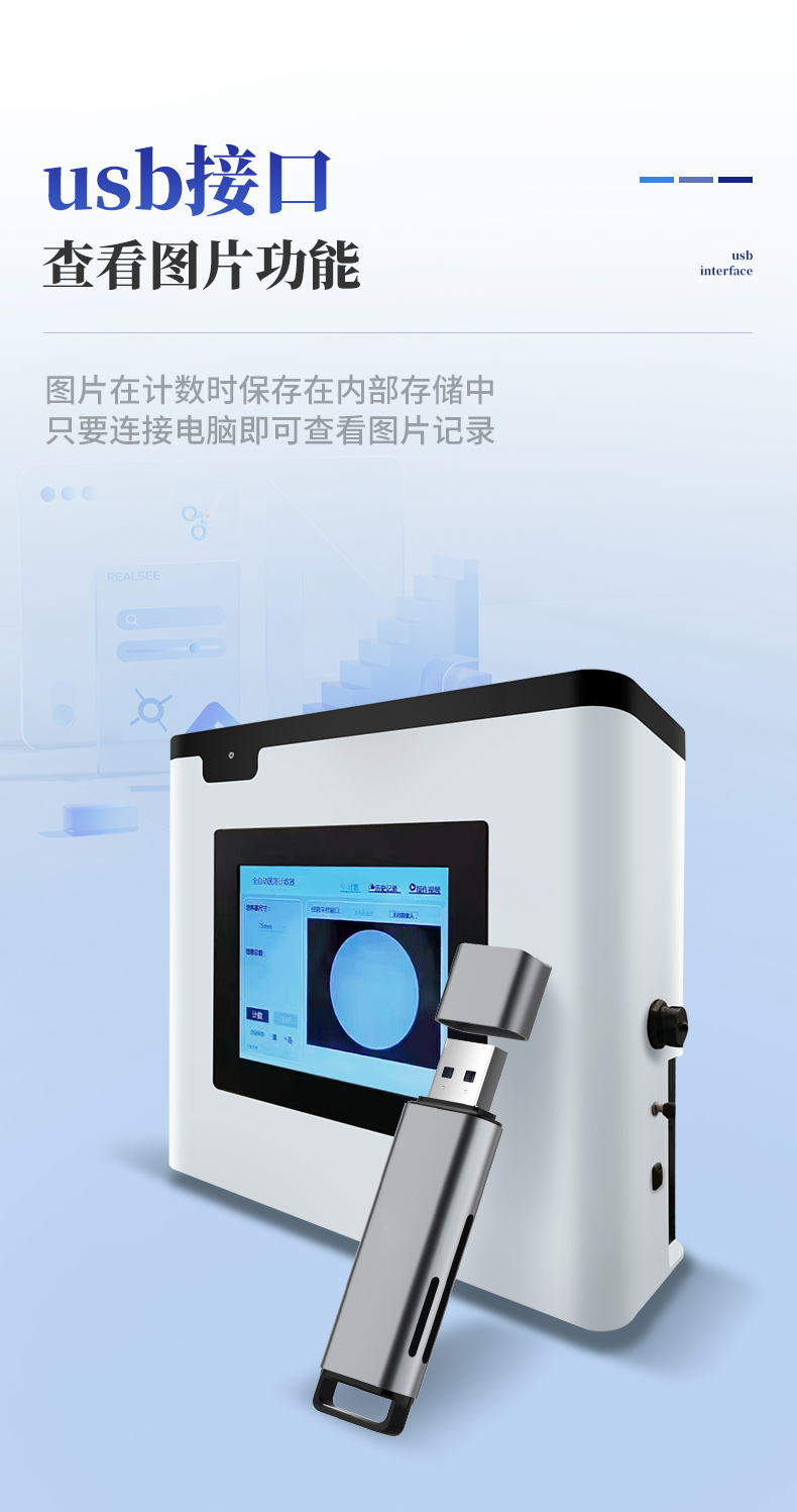 5. usb接口,具有查看圖片的功能,圖片在計(jì)數(shù)時(shí)保存在內(nèi)部存儲(chǔ)中,只要連接電腦即可查看圖片記錄。