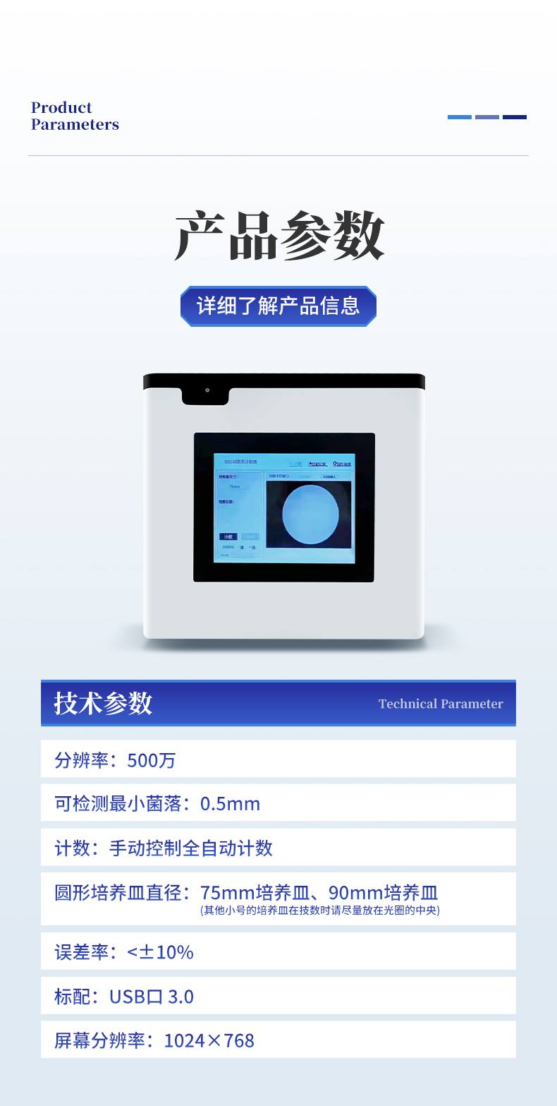 3. 采用攝像頭方式對(duì)培養(yǎng)皿進(jìn)行計(jì)數(shù)取代了傳統(tǒng)的計(jì)數(shù)方式,更加的**方便。