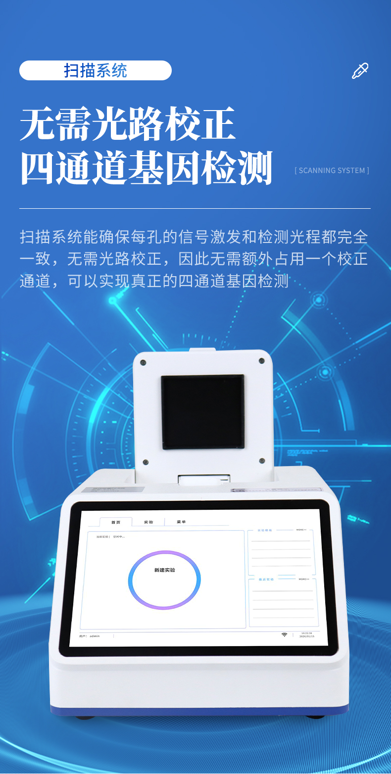 7、無需光路校正:掃描系統(tǒng)能確保每孔的信號激發(fā)和檢測光程都完全一致,無需光路校正,因此無需額外占用一個校正通道,可以實現(xiàn)真正的四通道基因檢測。★