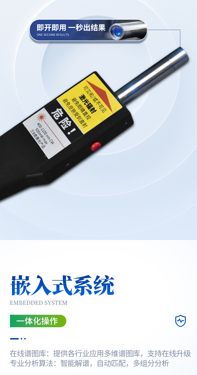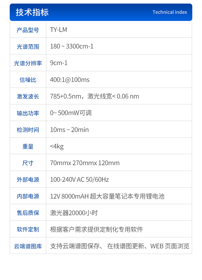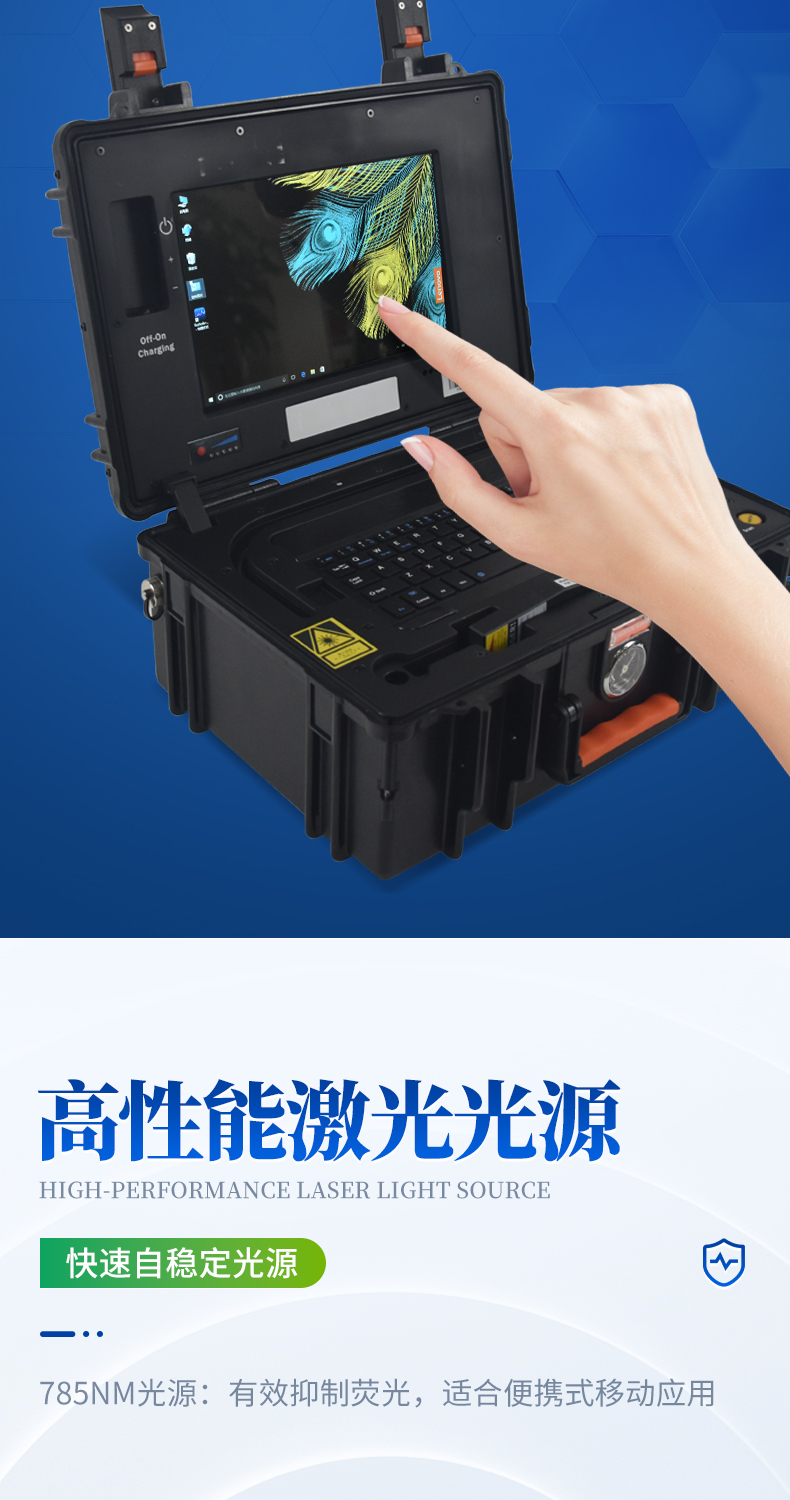 詳細(xì)產(chǎn)品介紹及技術(shù)參數(shù) 該儀器是一款易于攜帶的便攜式拉曼光譜儀。它通過激光照射樣品表面,與樣品交互作用后,收集散射的光,并分析光散射光譜中的拉曼散射光。這些拉曼散射光包含了物質(zhì)分子的振動和轉(zhuǎn)動信息,從而提供了關(guān)于樣品化學(xué)成分和分子結(jié)構(gòu)的信息,進(jìn)而進(jìn)行化學(xué)分析和物質(zhì)鑒定。 產(chǎn)品