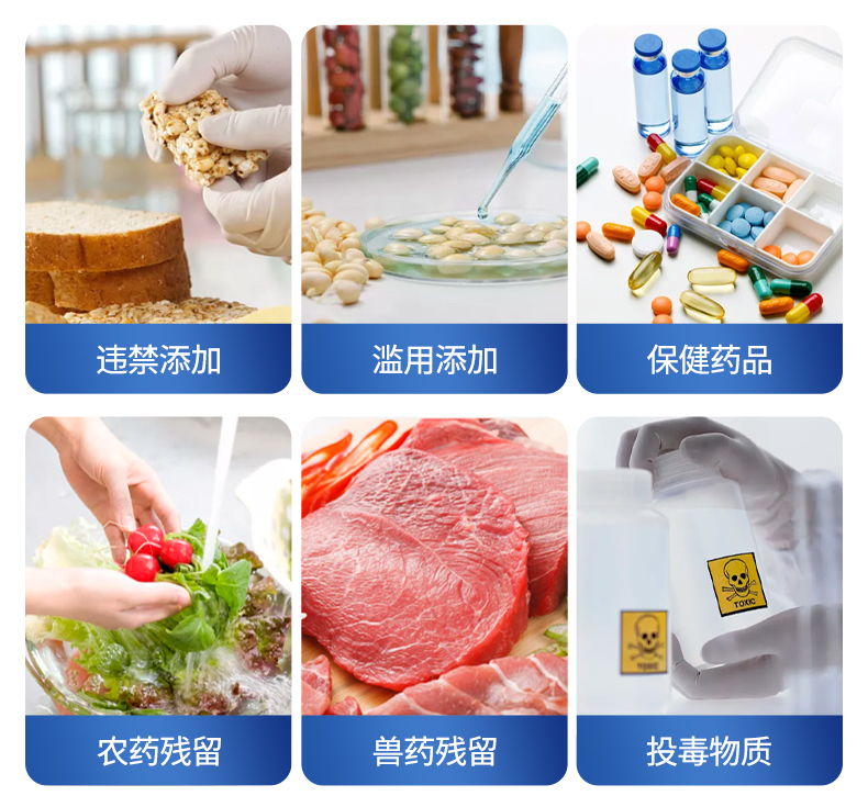 單臺設(shè)備可實(shí)現(xiàn)食品中非食用化學(xué)物質(zhì)、食品添加劑、農(nóng)藥殘留、獸藥殘留,保健食品中非法添加、化妝品中非法添加等的快速定量定性檢測,同時(shí)支持項(xiàng)目擴(kuò)展。