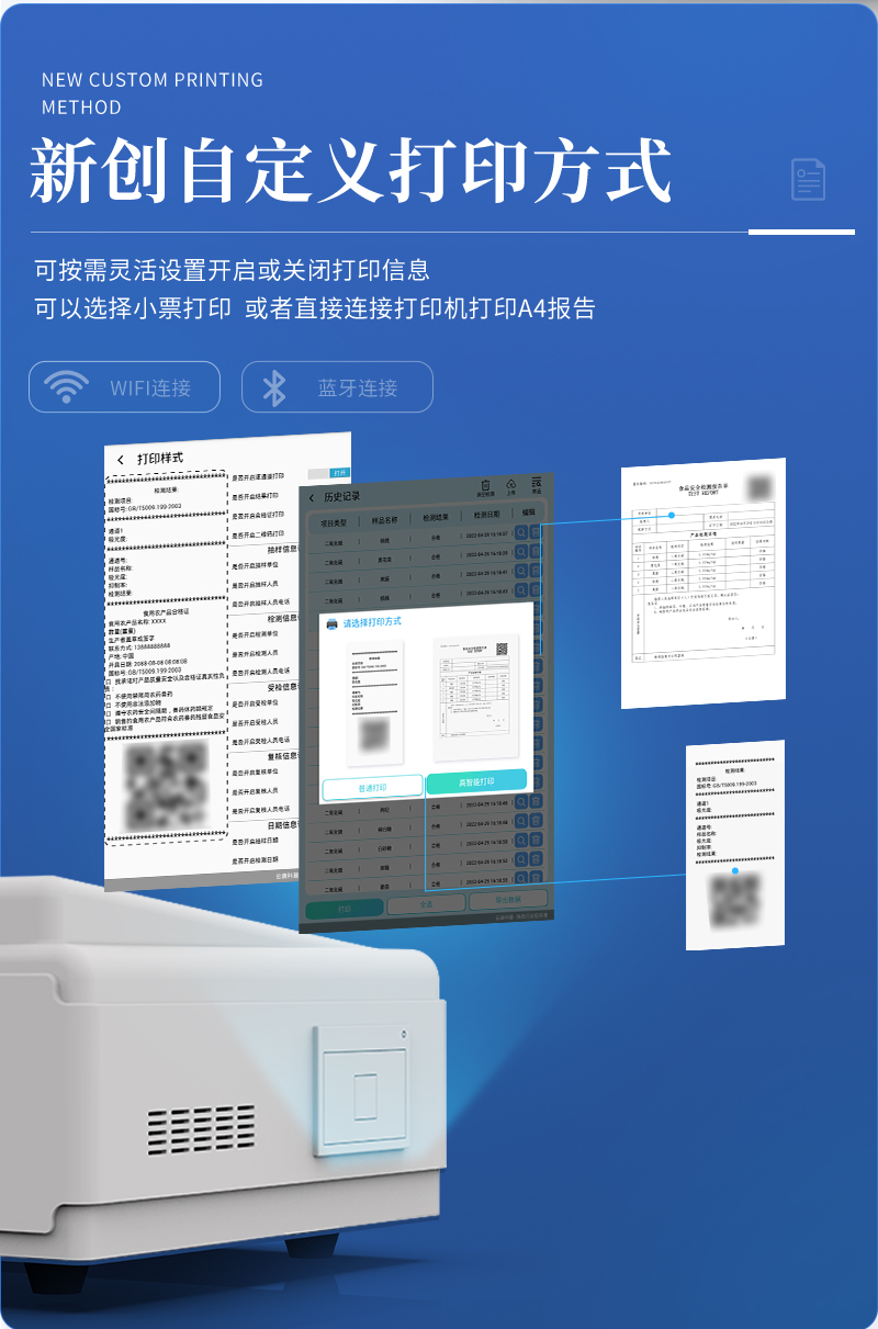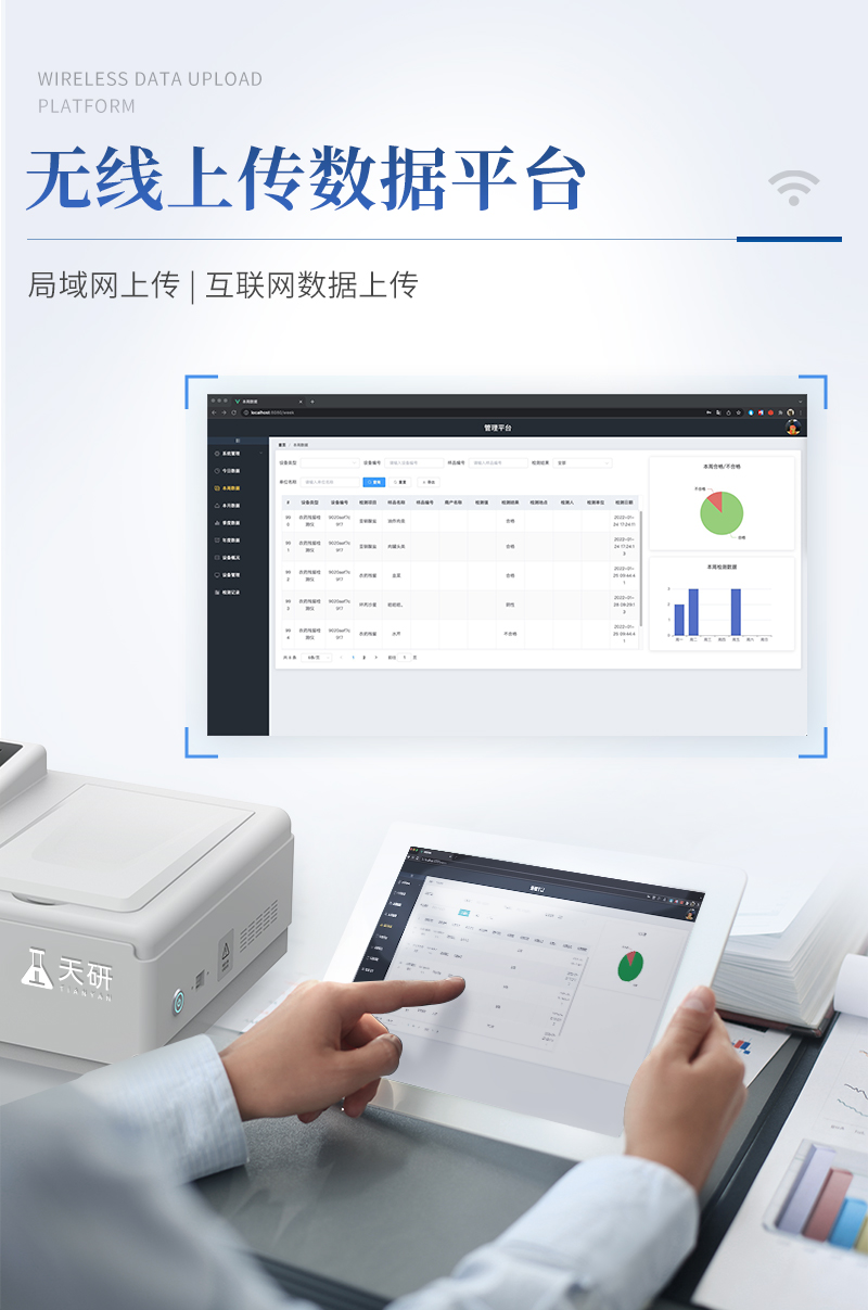 | 儀器采用手提式一體化系統(tǒng)檢測(cè)技術(shù),將分光光度模塊、新型農(nóng)殘檢測(cè)模塊、數(shù)字化管理模塊、無線通訊模塊高度集成于一體,支持檢測(cè)200種食品安全檢測(cè)項(xiàng)目,同時(shí)預(yù)留升級(jí)檢測(cè)方法。 | 儀器檢測(cè)模塊標(biāo)準(zhǔn)化、智能化,檢測(cè)項(xiàng)目可隨意自由組合。檢測(cè)箱體內(nèi)置多個(gè)標(biāo)準(zhǔn)檢測(cè)單元,檢測(cè)模塊可以調(diào)整配置。 | 顯示屏幕:儀器采用10.1英寸豎向液晶觸摸屏顯,搭配運(yùn)行安卓智能操作系統(tǒng),主控芯片采用ARM Cortex-A7,RK3288/4核處理器,主頻1.88Ghz,操作方便,性能更強(qiáng)。 | 檢測(cè)通道:≥12通道;采用精密旋轉(zhuǎn)比色池設(shè)計(jì),使用同芯片同光源校準(zhǔn)精度,解決不同光源之間的誤差值,更加準(zhǔn)確**。(1-12通道間誤差0.1%,專利號(hào):ZL202022821055.2) | 儀器光源:高精度進(jìn)口四波長(zhǎng)冷光源,每個(gè)通道均配置 410、520、590、630nm 波長(zhǎng)光源,標(biāo)配**的光路切換裝置,專利光路切換功能可實(shí)現(xiàn)64波長(zhǎng),并且所有檢測(cè)項(xiàng)目可實(shí)現(xiàn)所有通道同時(shí)檢測(cè)。 | 設(shè)備可一鍵校準(zhǔn),自動(dòng)保存校準(zhǔn)數(shù)據(jù),自動(dòng)對(duì)比校驗(yàn),得到精準(zhǔn)光源,采用Android SP存儲(chǔ)數(shù)據(jù),光源數(shù)據(jù)永不丟失,方便每一次使用。 | 通訊接口:配備無線通信模塊、4G(APN)通訊模塊、藍(lán)牙傳輸,同時(shí)具有雙USB接口以及RJ45網(wǎng)線接口,可以多方式實(shí)現(xiàn)數(shù)據(jù)保存及數(shù)據(jù)傳輸 | 存儲(chǔ)方式:支持U盤存儲(chǔ),標(biāo)準(zhǔn)USB接口,免驅(qū)動(dòng)安裝。檢測(cè)結(jié)果存儲(chǔ)容量20萬條以上,可生成Excel表格進(jìn)行拷貝,并具有登錄保護(hù)功能。 | 智能化操作系統(tǒng): | 1)操作系統(tǒng):儀器可在同一檢測(cè)界面自動(dòng)對(duì)應(yīng)相關(guān)檢測(cè)通道,一次性選擇1-12個(gè)樣品名稱,無需退出界面,節(jié)省操作時(shí)間。并可以對(duì)每個(gè)通道屬性和樣品信息單獨(dú)進(jìn)行編輯,例如送檢單位、人員,檢測(cè)人員等,打印時(shí)勾選打印顯示。 | 2)數(shù)據(jù)集成系統(tǒng):設(shè)備首頁自動(dòng)匯總分析檢測(cè)數(shù)據(jù),包含:周檢測(cè)數(shù)據(jù)、月檢測(cè)數(shù)據(jù),全部檢測(cè)總數(shù)量,均包含檢測(cè)總數(shù),合格數(shù),不合格數(shù),以及相關(guān)柱形分析圖,各項(xiàng)檢測(cè)數(shù)據(jù)一目了然,無需電腦查詢,更加快捷直觀。 | 3)數(shù)據(jù)庫系統(tǒng):十幾項(xiàng)數(shù)據(jù)庫分類管理儀器:包含項(xiàng)目類型、項(xiàng)目數(shù)據(jù)、檢測(cè)數(shù)據(jù)、歷史記錄、國標(biāo)信息、曲線信息、采樣信息、檢測(cè)信息、受檢信息、復(fù)核信息、圖表信息、光源校準(zhǔn)信息、打印樣式信息、樣品庫信息等等,數(shù)據(jù)庫之間互相協(xié)調(diào)聯(lián)動(dòng)保證數(shù)據(jù)的真實(shí)完整性。同時(shí)產(chǎn)品數(shù)據(jù)庫以及歷史檢測(cè)記錄支持一鍵檢索功能。 | 4)限量規(guī)判系統(tǒng):具有限量查詢、添加物質(zhì)合規(guī)判定系統(tǒng)。檢測(cè)出結(jié)果后,系統(tǒng)自動(dòng)調(diào)用系統(tǒng)數(shù)據(jù)庫中相關(guān)國標(biāo)進(jìn)行比對(duì)判定,客觀顯示判定結(jié)果是否合格。 | 5)項(xiàng)目預(yù)設(shè)系統(tǒng):儀器具有任務(wù)預(yù)設(shè)模塊,一鍵提前預(yù)設(shè),給出方便快捷的新檢測(cè)方案,每一個(gè)任務(wù)分別可以設(shè)置不同的樣品、批次、編號(hào)、來源、備注、抽樣信息、檢測(cè)信息、受檢信息、復(fù)核信息等更多信息。樣品送檢時(shí)一鍵調(diào)取保存信息,并可多次調(diào)取,大大提高檢測(cè)效率。 | 6)數(shù)據(jù)監(jiān)管系統(tǒng):同步對(duì)接監(jiān)管平臺(tái),數(shù)據(jù)可局域網(wǎng)和互聯(lián)網(wǎng)數(shù)據(jù)上傳,檢測(cè)結(jié)果可選擇直接傳至食品安全監(jiān)管平臺(tái)。進(jìn)行區(qū)域食品安全監(jiān)管及大數(shù)據(jù)分析處理與數(shù)據(jù)統(tǒng)計(jì),檢測(cè)區(qū)域食品安全長(zhǎng)短期動(dòng)態(tài),達(dá)到食品安全問題預(yù)估、預(yù)警。 | 7)打印系統(tǒng):內(nèi)置全新打印機(jī),新創(chuàng)自定義打印方式,可按需靈活勾選控制:產(chǎn)品合格證(國家農(nóng)業(yè)部標(biāo)準(zhǔn)要求),二維碼,抽樣信息、檢測(cè)信息,受檢信息、復(fù)核信息、抽樣日期、檢測(cè)日期等信息的打印。 | 供電模式:儀器交直流兩用,直流12V供電,可連接車載電源,可配6ah大容量充電鋰電池,電量可實(shí)時(shí)顯示,方便戶外流動(dòng)測(cè)試。 | 膠體金檢測(cè)模塊:采用雙通道CMOS成像處理技術(shù)及膠體金免疫層析技術(shù),可同時(shí)讀取雙膠體金卡數(shù)據(jù),自動(dòng)采集、處理分析,將檢測(cè)結(jié)果顯示,并可根據(jù)參考限值自動(dòng)判斷檢測(cè)結(jié)果,可檢測(cè)常見的獸藥殘留、生物毒素、抗生素、違禁添加物等。 | 1)探測(cè)技術(shù):CMOS成像探測(cè); | 2)檢測(cè)通道:1個(gè)通道; | 3)檢測(cè)方式:消線法和比色法; | 4)顯示模式:陰性或陽性; | 5)曲線形式:軌道式掃描方式,顯示金標(biāo)卡圖像,實(shí)時(shí)生成、